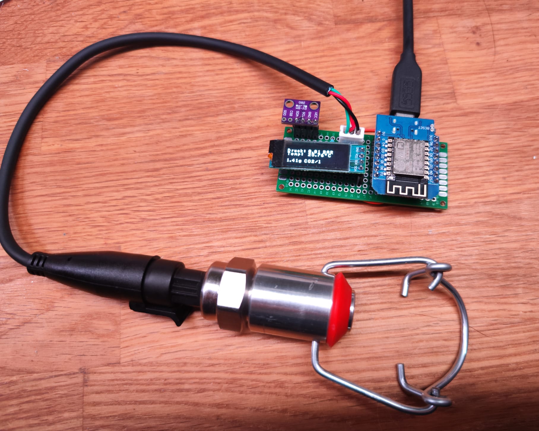 Prinzipiell gibt der Sensor auch nur 0,5-4,5V raus und läuft über einen Spannungsteiler am ADC des ESPs. Der jetzige verbaute BME280 sollte dann noch mit einem DS18B20 ersetzt werden um "direkt" an der Flasche die Temperatur messen zu können.