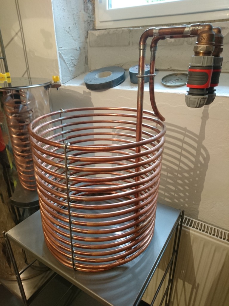 Sind glaube ich etwas über 10m aus 12mm Rohr. Kühlt 50 Liter in einer halben Stunde