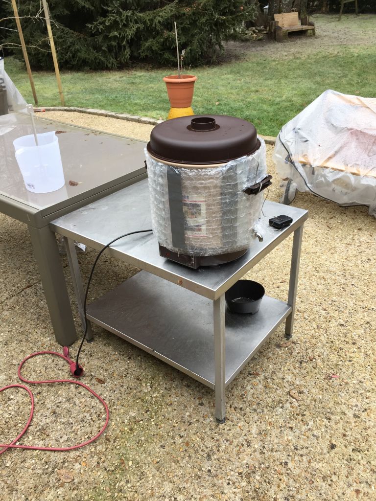 So, los geht's. Alles sauber gemacht und wenigstens ein bisschen Isoliert. Maische Einkocher.