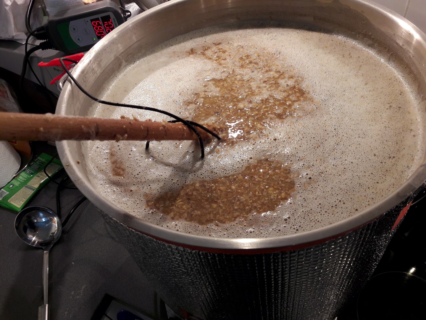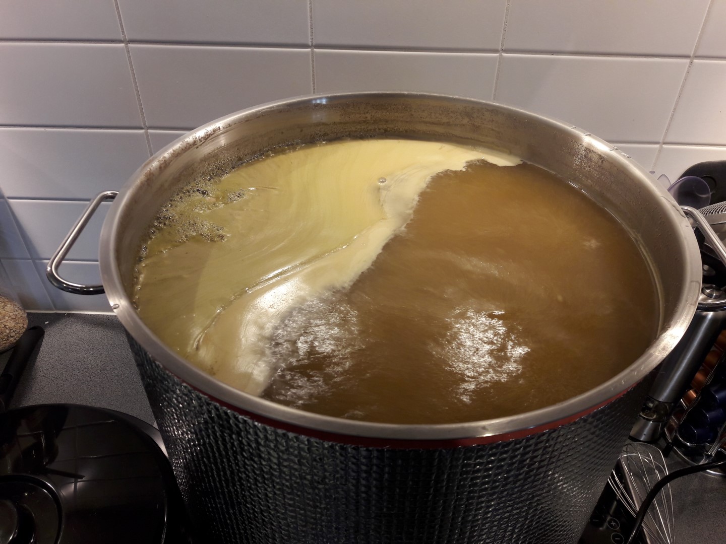 Primäre Frage war ja, ob man die 8kg Schüttung mit genügendem Hauptguss überhaupt in einen Einkochtopf bringt, oder ob es den Rahmen sprengt.