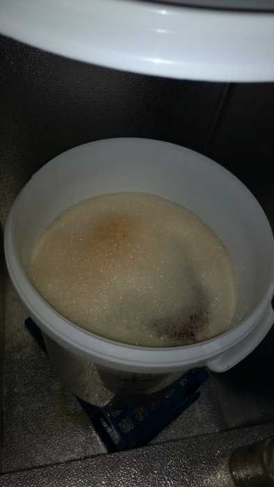 Zwei Wochen Cold Crash bei -0,5°C waren dann doch zu viel des Guten. Das Bier war beim Abfüllen glasklar, die Nachgärung hängt bei 1 Bar, Ziel: 2,2 Bar @ 18°C, die knapp 8 Vol.% machen es auch nicht besser... . Im KEG carbonisieren wäre wohl ideal gewesen.