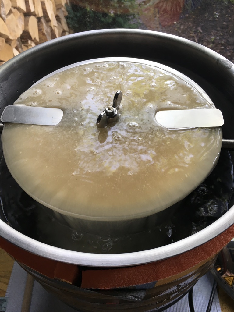 - Während des Kochens lass ich bei 100° einen Liter Würze durch den Hahn laufen und kipp ihn wieder oben rein (wahrscheinlich ist dieser Punkt mehr Placebo als wirksam)