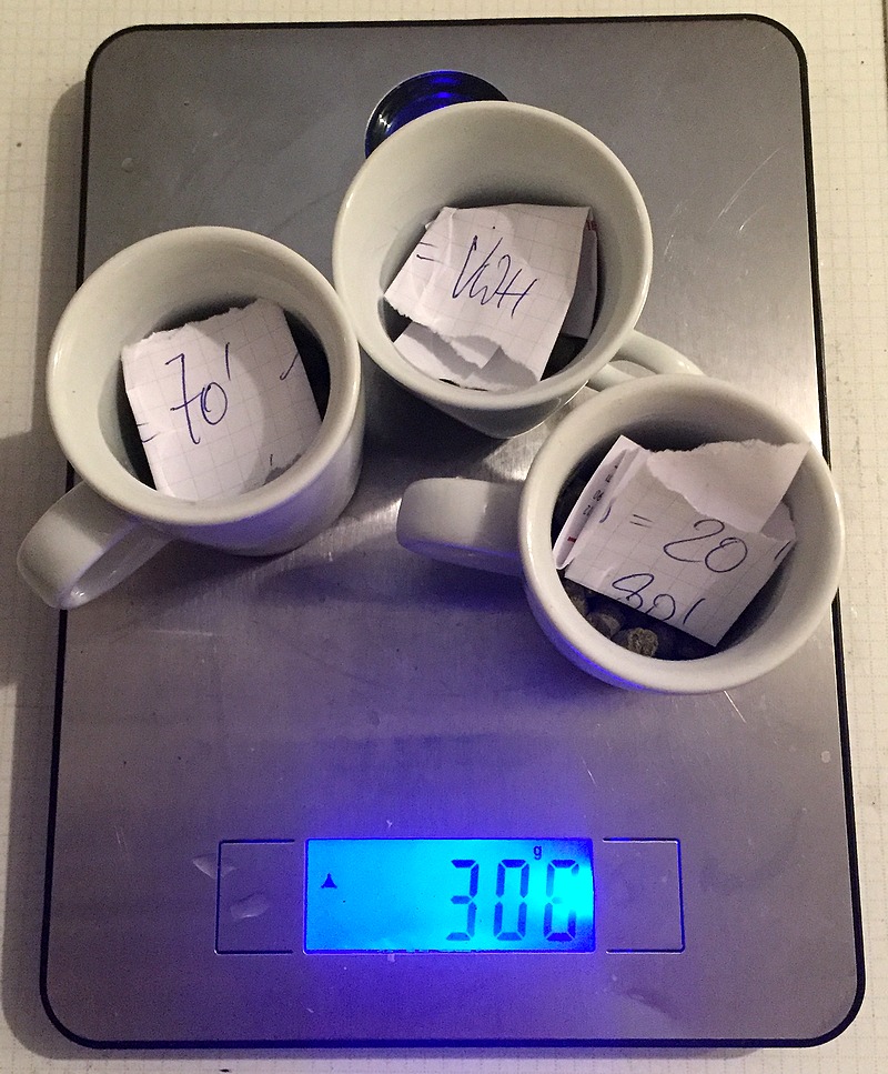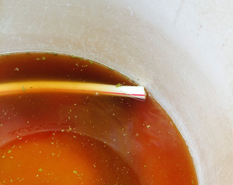 ... sodass ich nochmal umfüllen mußte und dabei das Gebrösel (Hopfenharzklümpchen) mit 'm Wäschenetz abgefiltert habe.
