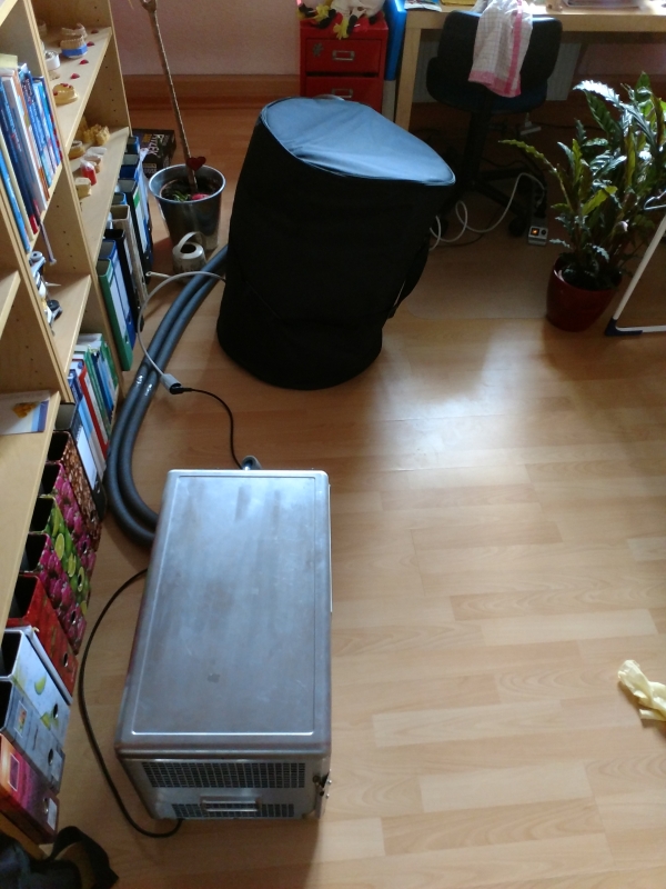 Abseien über einen großen Monofilamentfilter im Fass und schön verpackt in die Isotasche.