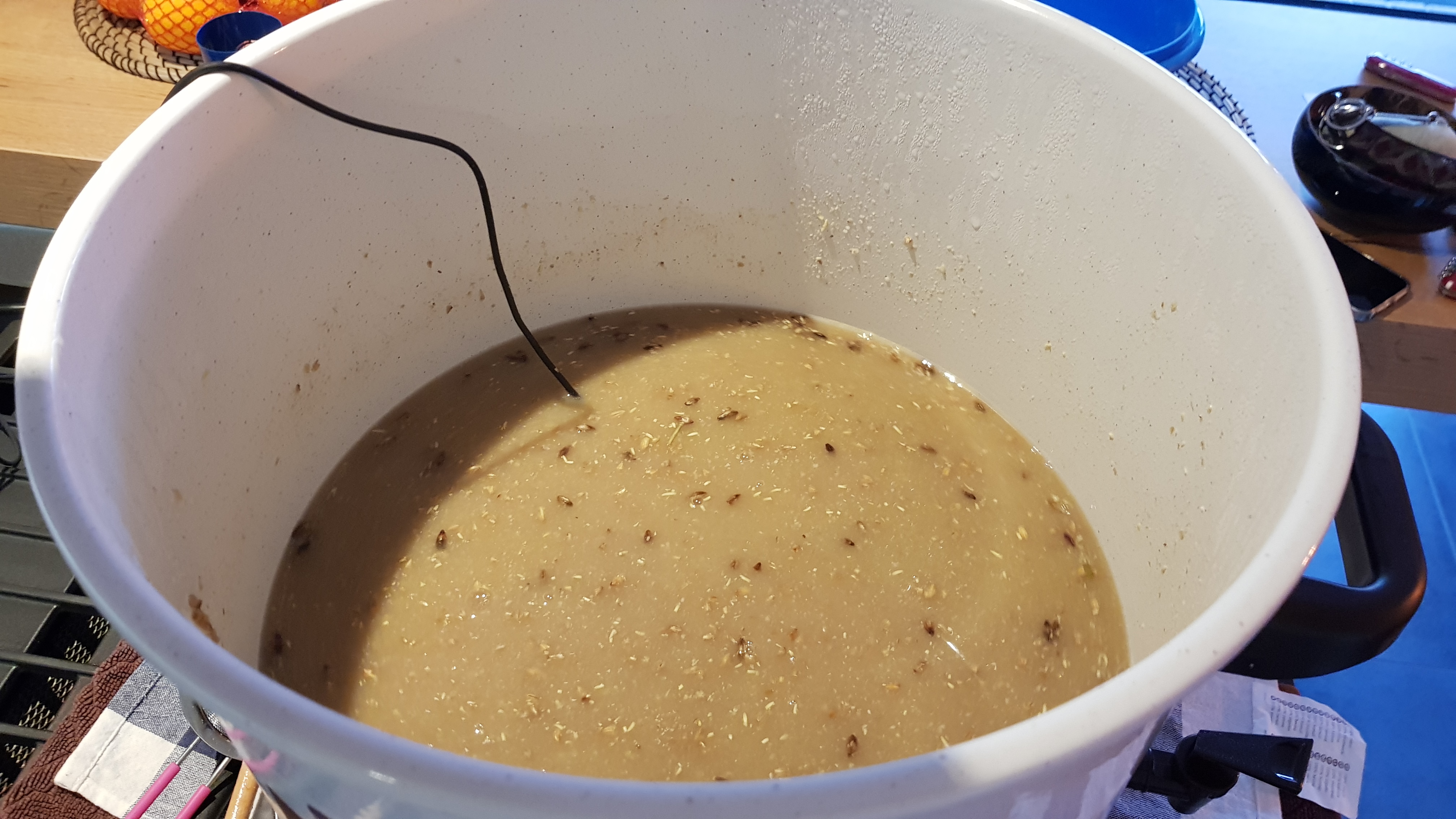 Schlauerweise hab ich den Hahn vom Gähreimer aufgelassen. Nach dem der Boden nass und viel Würze unter die Küche gelaufen ist habe ich es dann auch bemerkt. Die Küche ist Nagelneu und der Abend gerettet...