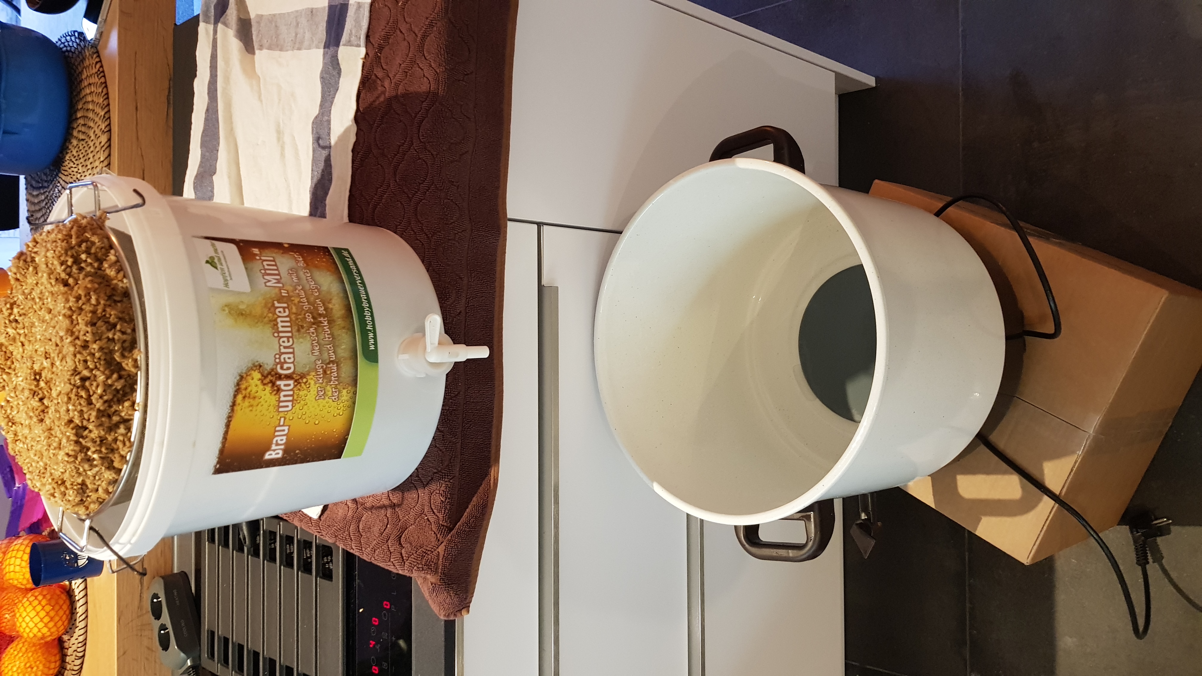 Anstelle eines Brausets habe ich mir einen gebrauchten alten Einkocher gekauft und eine Braumischung.