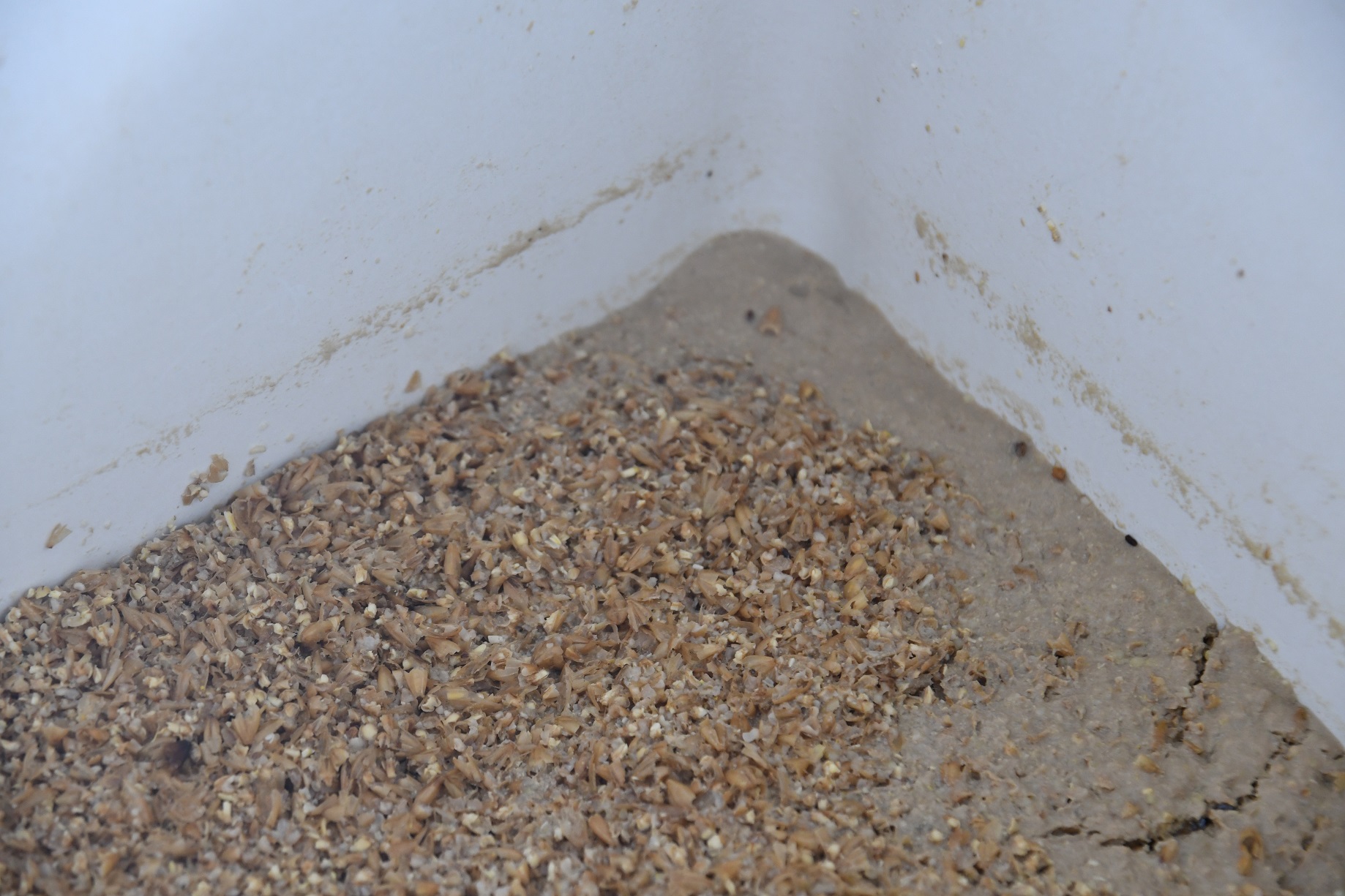 bereit zum Ausschlagen, Whirlpool ist angedreht, Treber wartet vorne links im Eck auf den Abtransport