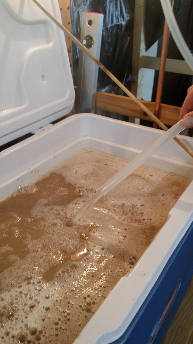 Dann Neuerung 6: Ein echt effizientes Teil der Anlage. Praktisch nur zwei Bauteile, die jedes Läutern zur Erfolgsstory machen. Läutergrant mit Schnüffelstück und Siphon. Erster aus Kuper gelötet, zweiter aus einem Stück Silikonschlauch. Da kann man auch sehr schön den Klarlauf begutachten.