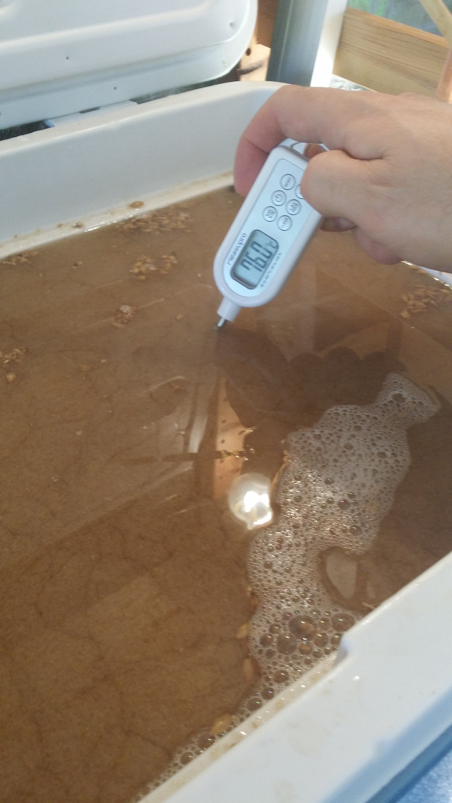 Beim Einmaischen kommen dann Neuerung 2, 3 und 4 ins Spiel: Mein Proficook (rundes Q-Siegel, ohne Macke beim Aufheizen bis jetzt) und mein Rührwerk und Leuterator mit Hahn von Adams Hardware. Das erleichtert die Maischearbeit wirklich erheblich! Außerdem ist Läutern ohne Umschöpfen echt eine bequeme Sache. Uns sieht außerdem auch noch klasse aus!