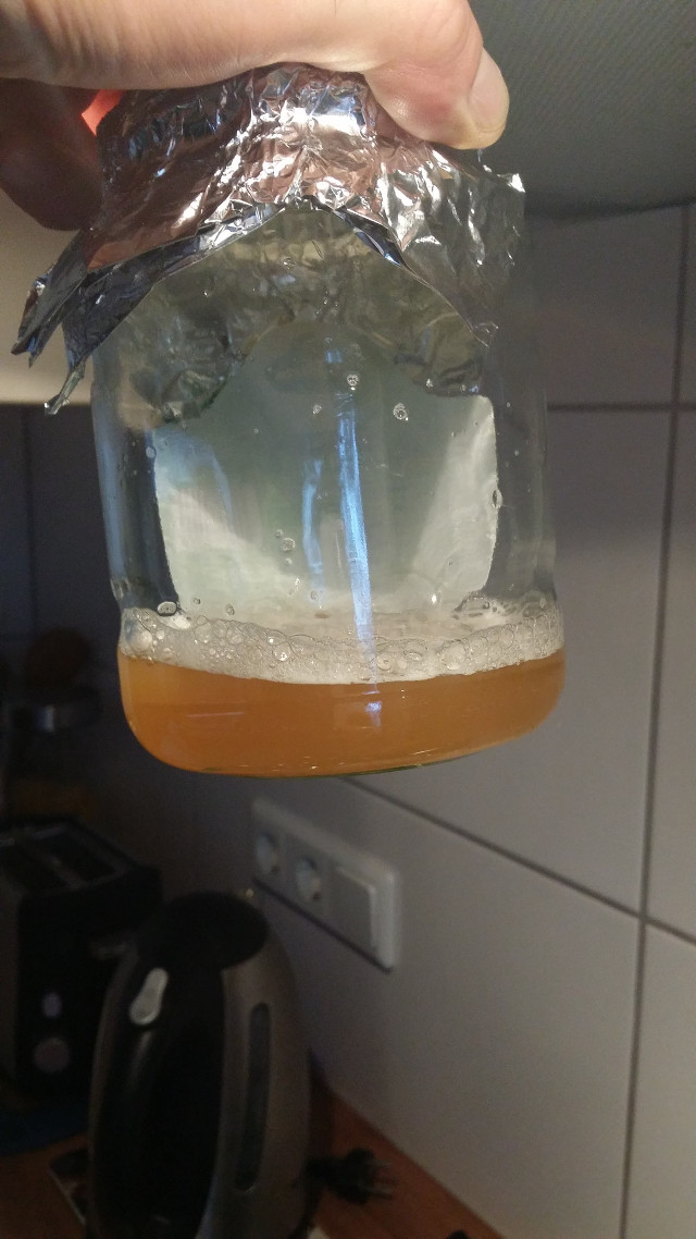 3 Tage vor dem Brautag habe ich auf dem Herd einen Minisud gemacht um Speise für meinen Hefestarter zu haben. „Läutern“ mit Küchensieb ist wirklich kein Spaß, aber geht. Danach musste sich die gute Gutmann-Hefe einige Zeit im Kreis drehen.