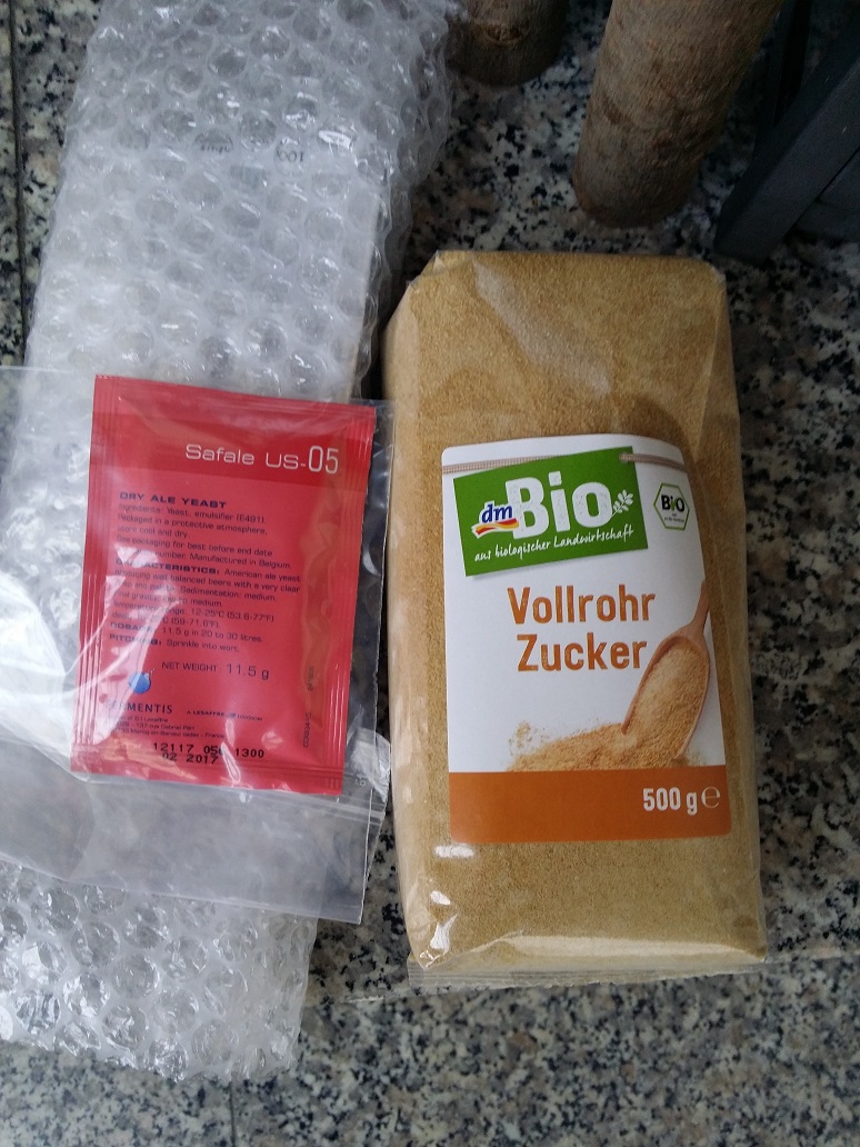 Beim Hopfenkochen kommen noch 500g Rohrzucker hinzu. Vergoren wird mit der US-05