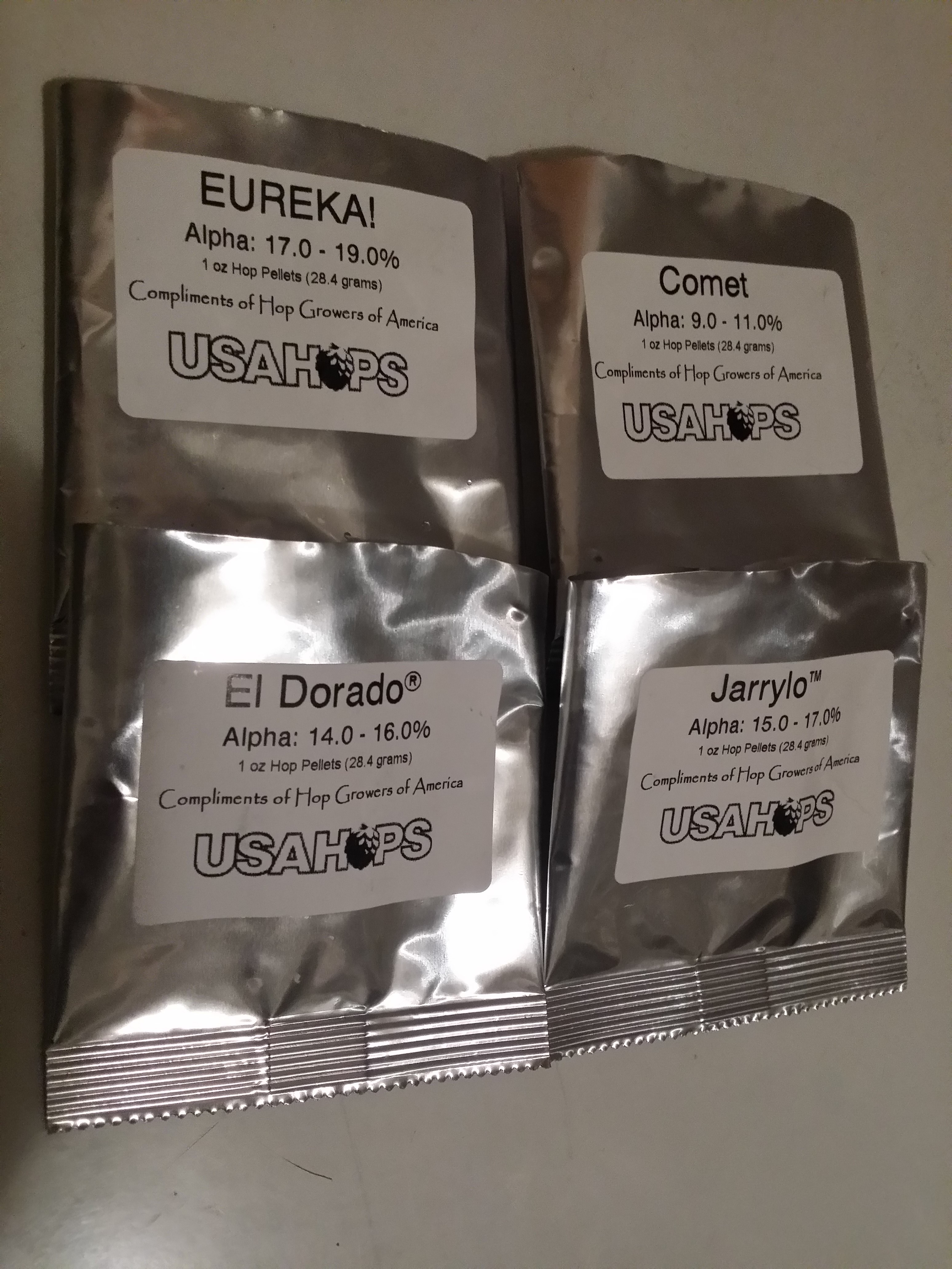 Ich hatte von der BrauBeviale 2015 Nürnberg jede Menge USA-Hopfen übrig. Aus dieser riesen Auswahl suchte ich die Hopfensorten aus und berechnete das Mischungsverhlätnis. Das rezept dürfte somit in dieser Art einzigartig sein.