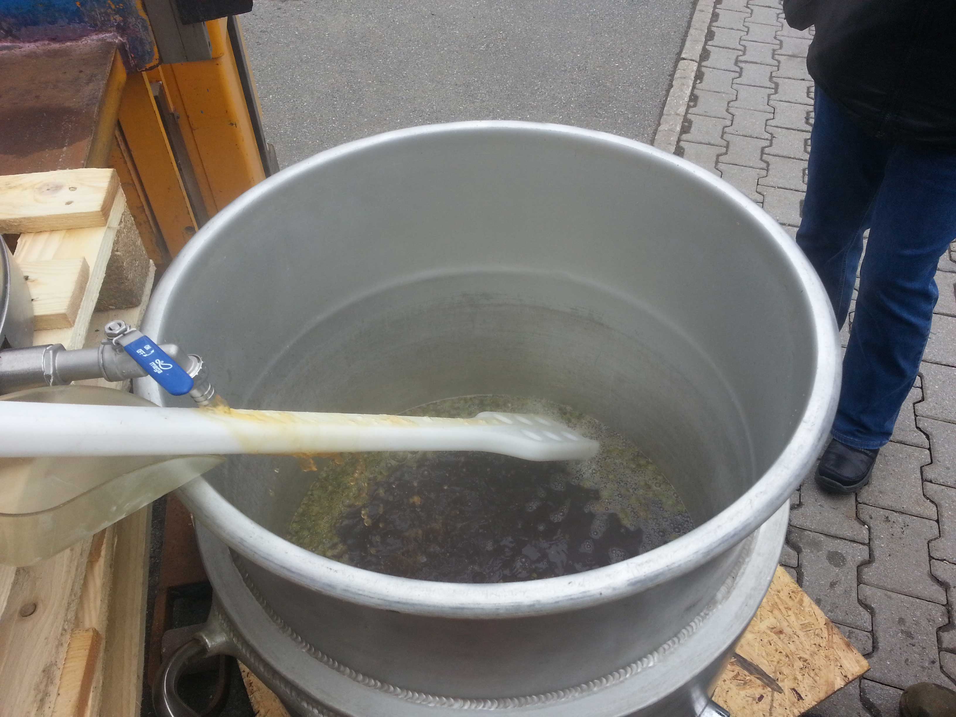 VErbesserungswürdig: Nachgussbereitung. Wir hatten kochendes Wasser im Läuterbottich (isolierter Milchtank) zwischengelagert und dann vor dem Abmaischen in Hobbocks umgefüllt. Bis zu den Nachgüssen war es schon wieder zu kalt )-: DA muss ich mir noch was einfallen lassen.