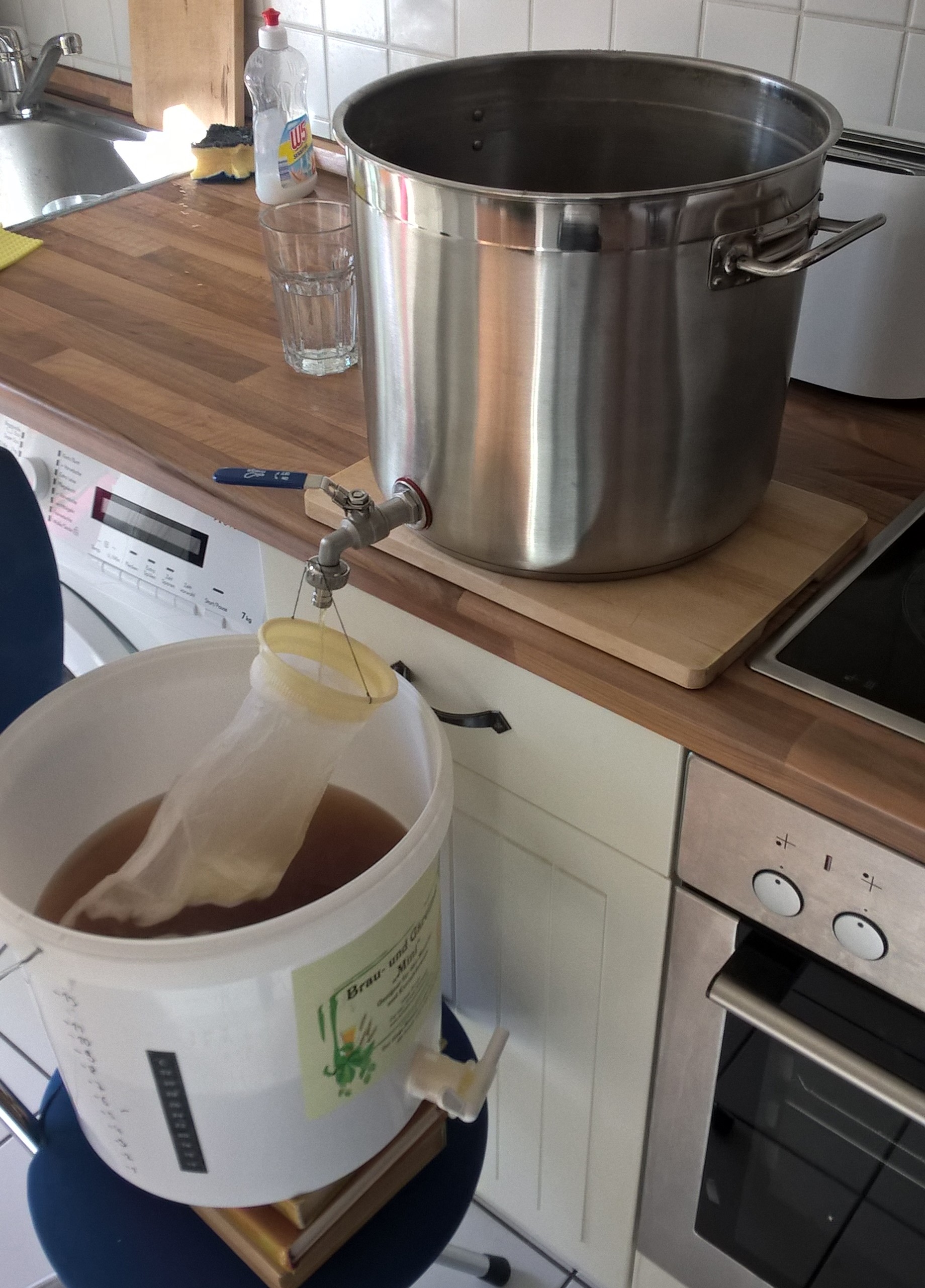 Also war die nächste Stufe schon etwas vernünftiger, großer Kochtopf, Läuterhexe, Gärbottiche, Spindel etc.