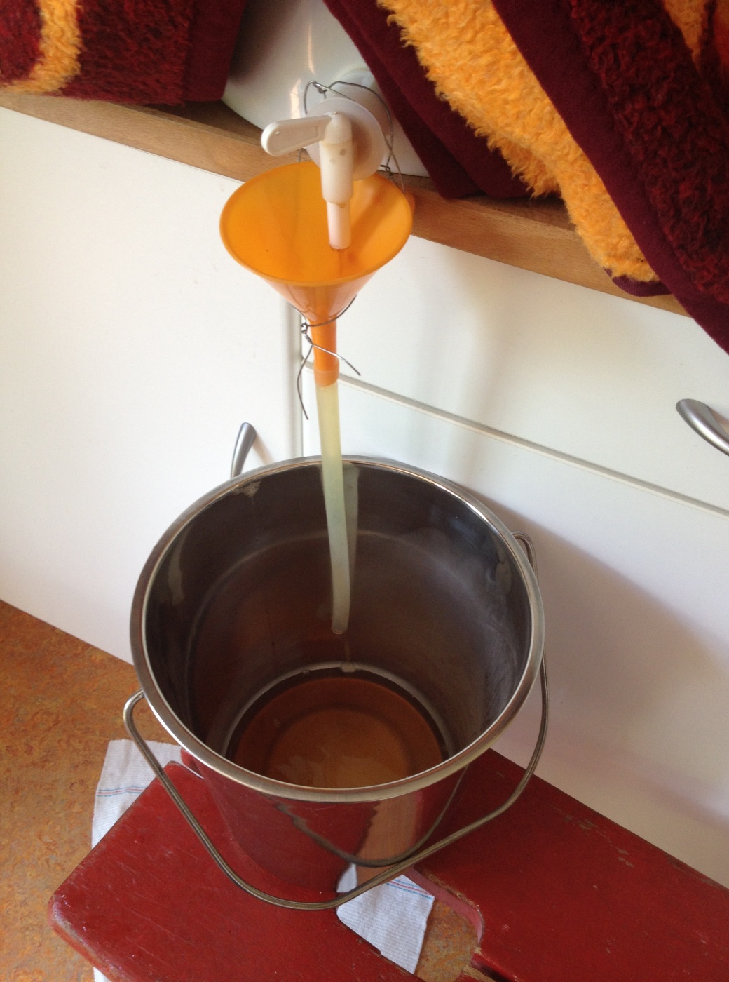 Nach der Lektüre vieler Beiträge zum Läutern habe ich mir auch einen Läutergrant aus einem kleinen Trichter gebastelt.