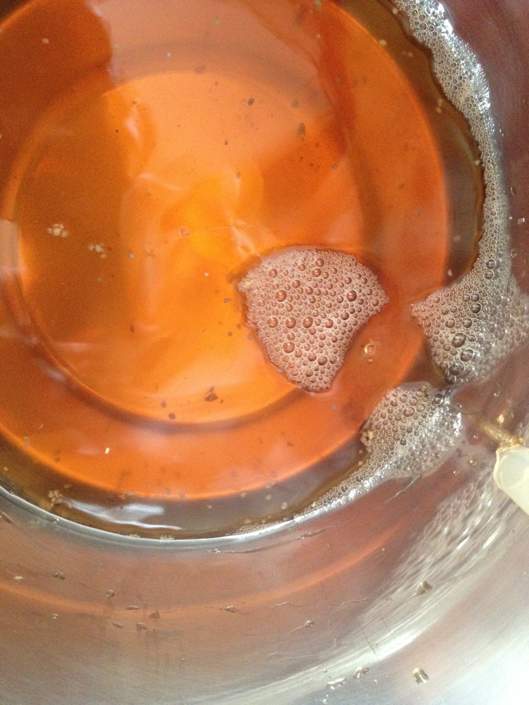 Nachdem ich bei den letzten Suden ziemlich langsam geläutert hatte, ging ich diesmal etwas forscher zur Sache, erhöhte die Nachgüsse noch etwas bis die Pfanne voll war und war nach einer Stunde fertig.