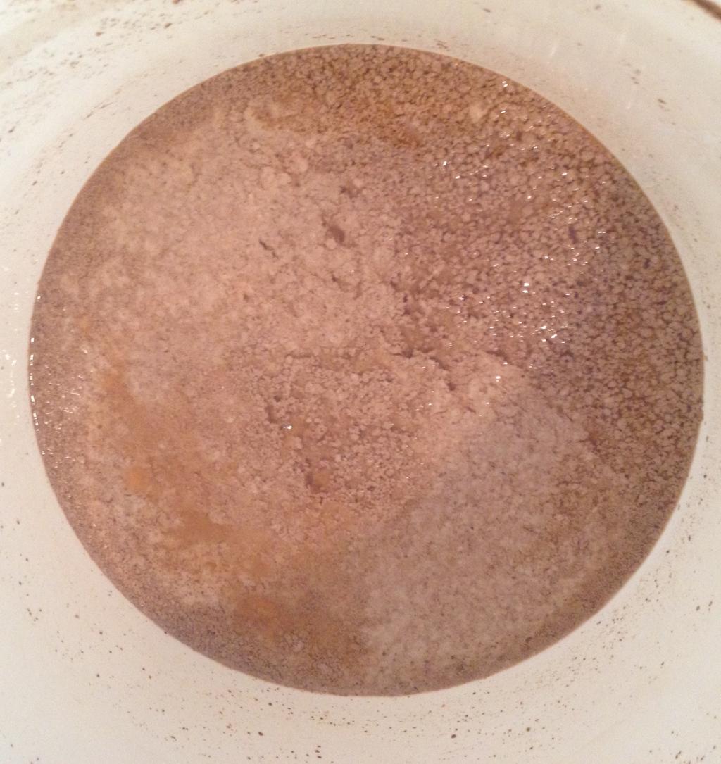 Jetzt kam etwas, was ich noch nicht kannte. Auf der Maische schwammen kleine Pflanzenteile, die wie Keimlinge aussahen (nicht im Bild). Außerdem waren kleine weiße bis leicht grünliche Bröckchen zu sehen.