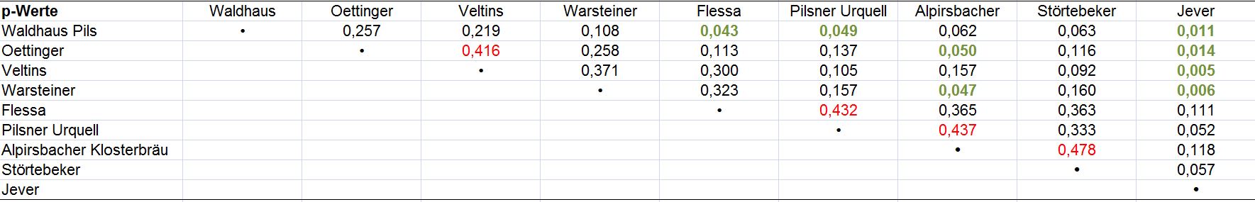 Bei mIr in der Blindverkostung waren die Pilsener von Jever, Krombacher, Warsteiner, Rothaus, Holsten und das Schwabenbräu Märzen.
