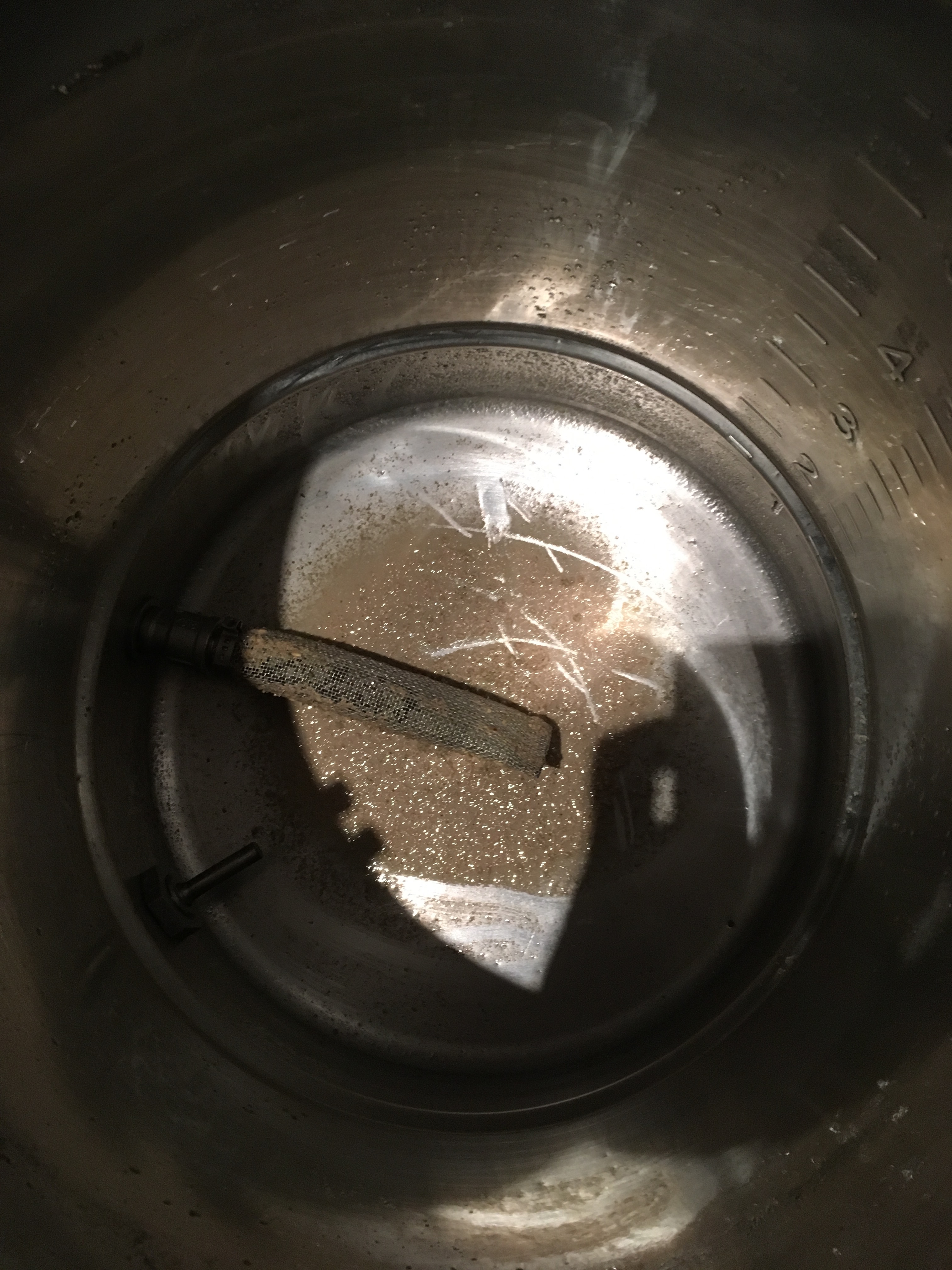 Bis zum Abläutern gab es keine Probleme, danach hab ich den Deckel geschlossen und erst wieder bei ca. 90 Grad nachgesehen. Zuerst hatte ich die Pumpe in Verdacht, dass sich evtl. das Gehäuse bei steigender Temperatur auflöst - die sah aber eigentlich in Ordnung aus. Nach Kunststoff hat der graue Belag auch nicht geschmeckt :)