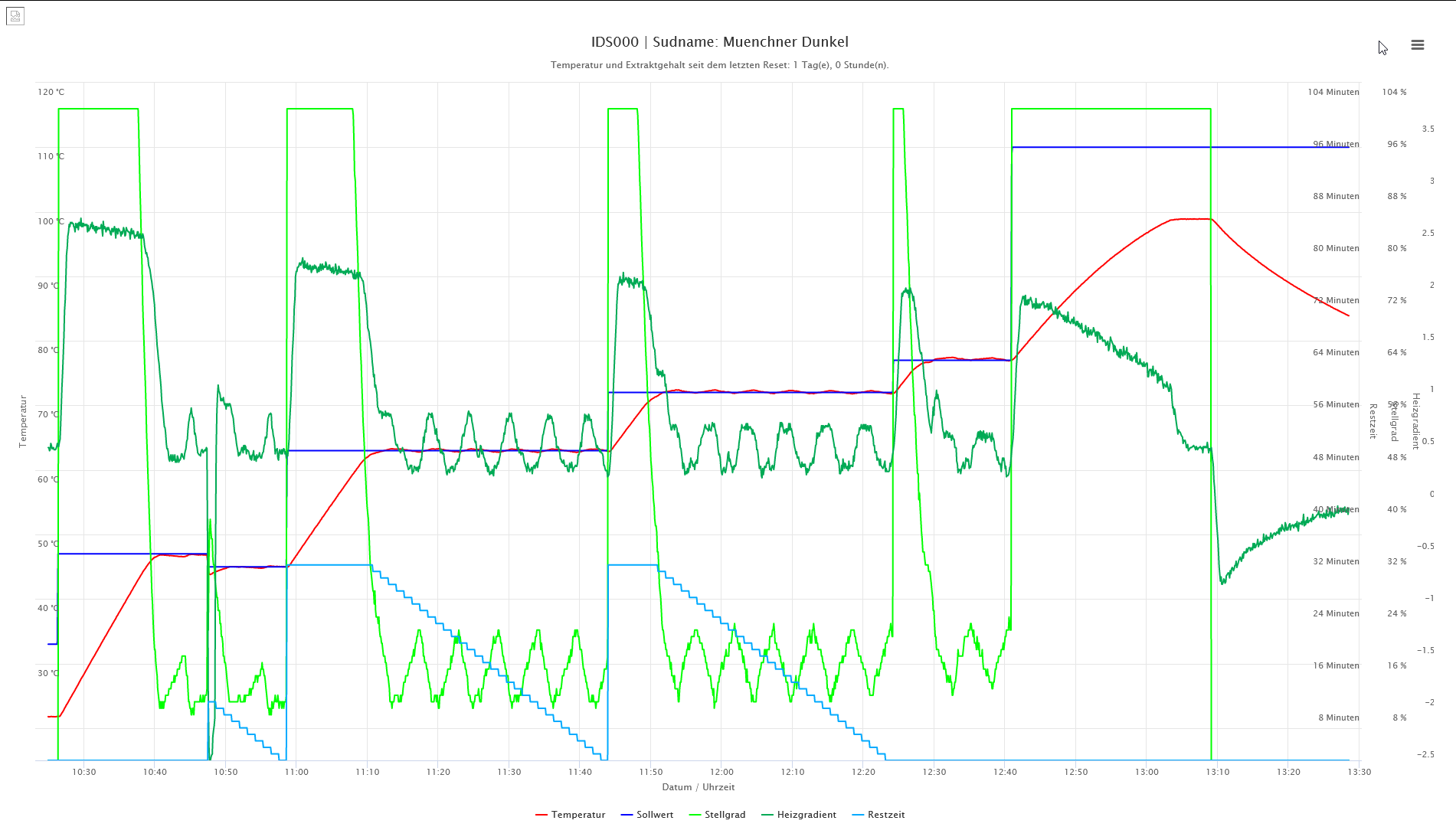 Ich hab den ersten Sud mit der Regelung gebraut. Alles ist super gelaufen. Im Bereich von 72 °C könnten die Regelparameter etwas besser sein da war ich schon eher bei +/- 0,3 - 0,4 K Delta zum Sollwert. Der Prototyp kommt demnächst in ein Gehäuse und dann werde ich die Platine mit dem µC machen so das ich das DevBoard nicht mehr brauche.