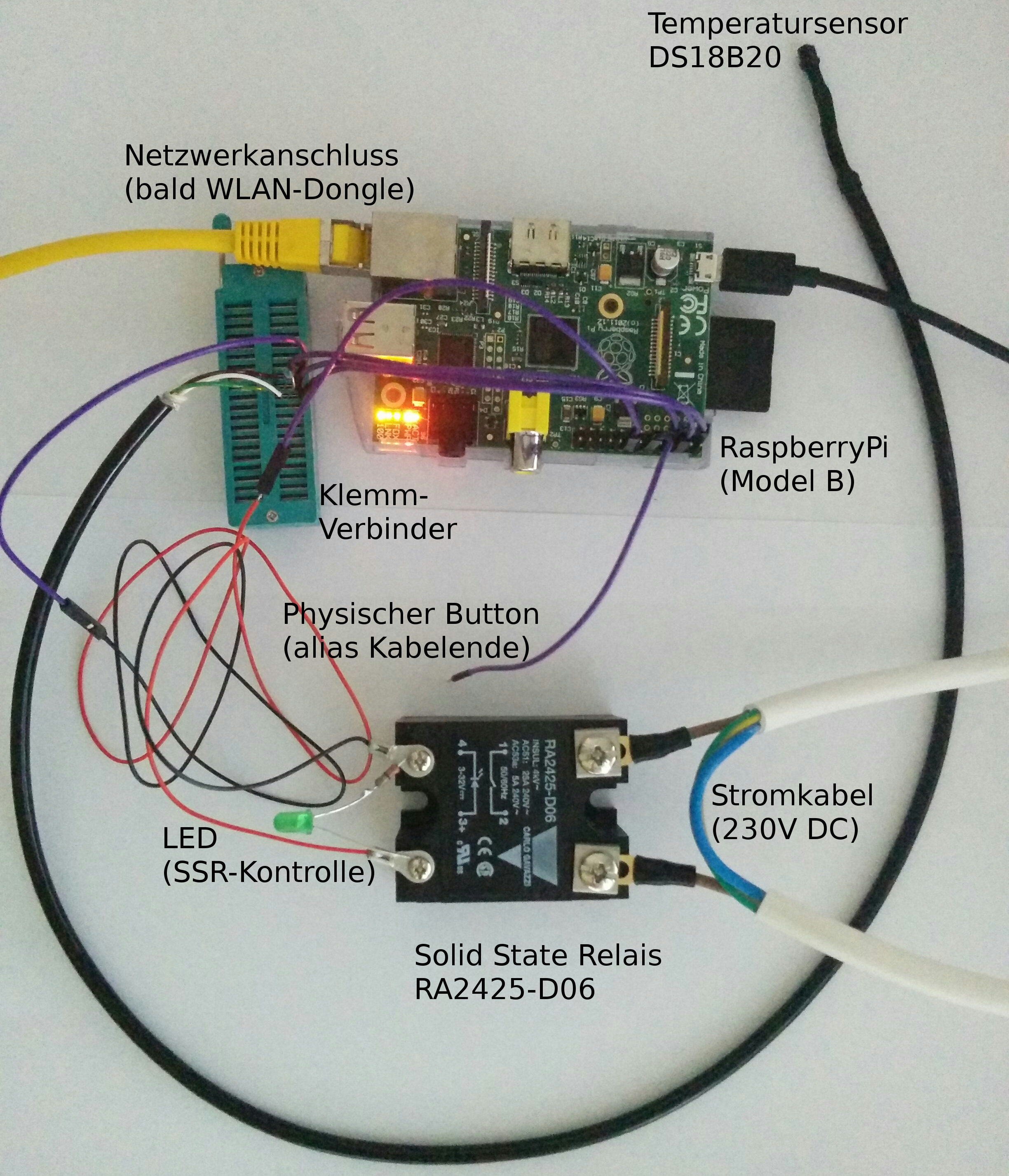 Der Thread Profi Cook Automatisieren viewtopic.php?f=21&t=3841 hat mich motiviert, mein RaspberryPi-Projekt hier vorzustellen. Ich möchte damit meinen Einkocher steuern. Vermutlich gibt es irgendwo bereits etwas ähnliches, aber es ging mir ja darum, es selber zu machen.