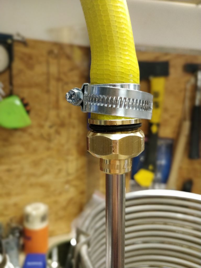 Ich denke die günstigste Lösung, was man im DIY Bereich finden wird, wenn man nicht schweissen oder Löten will, ist: nimm aus den UK, USA, oder China ein 25 ft. 1/2" Edelstahl Würzekühler, der ein ca 12,7mm AD hat und mit passenden 1/2" BSP Klemmringverschraubungen geliefert wird. Der hat ein Innendurchmesser von ca 11mm und somit auch für HERMS ein höhere Durchfluss. Die Verschraubungen muss man mit einem Schraubstock und Schlüssel mit Hebel Verlängerung befestigen, aber es geht.