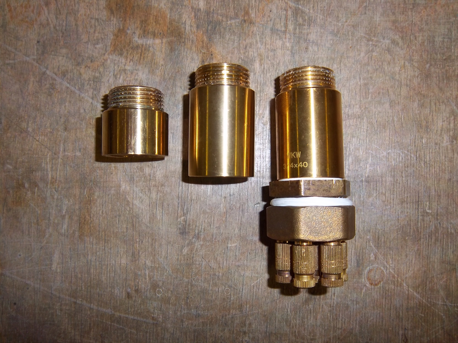 Das untere Ende des Dampfkondensators habe ich jetzt mit einer HT-50 Schlauchanschlusskappe (nach der 2. Verjüngung abgeschnitten) versehen.