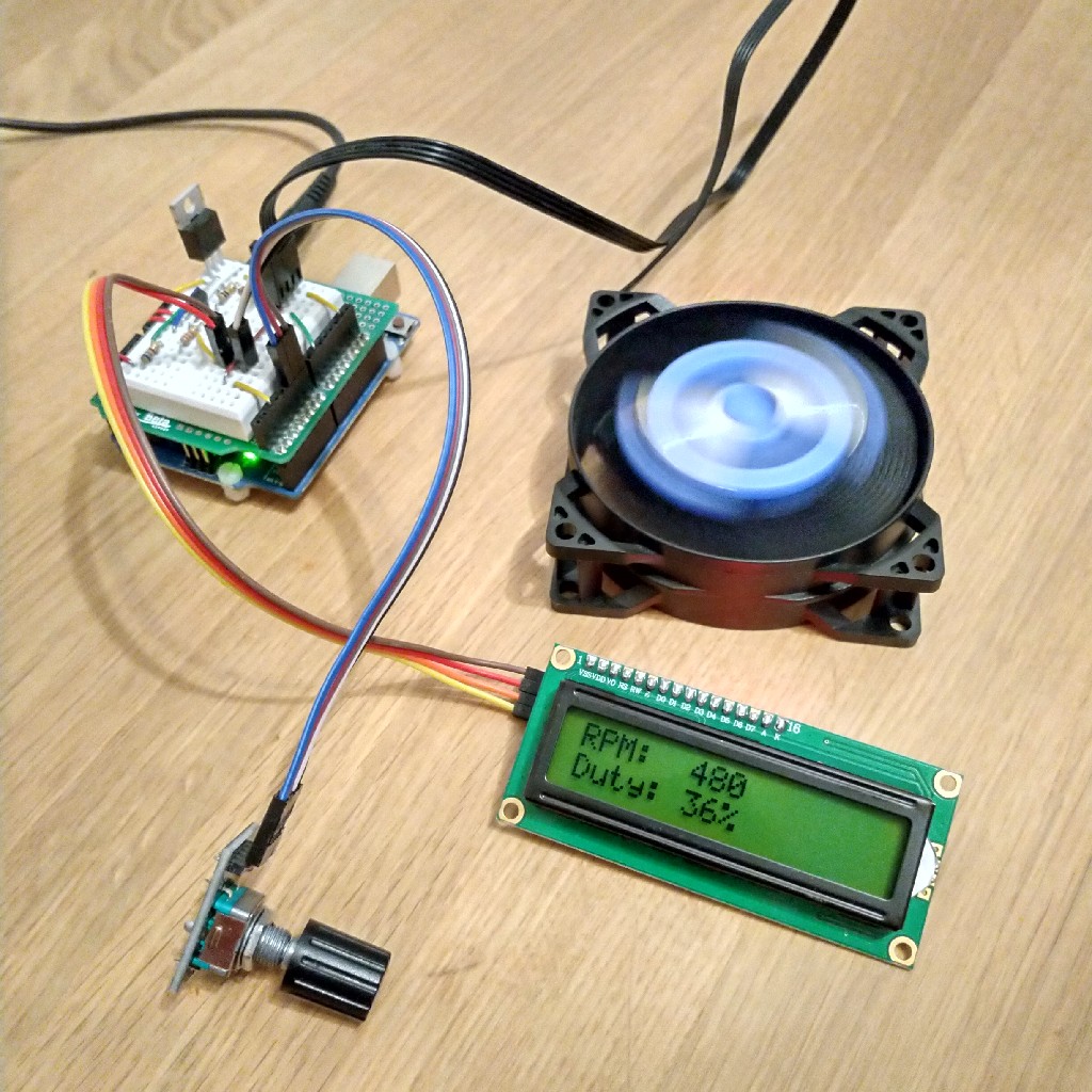 Zudem wird der Lüfter über die PWM gesteuert. Damit reicht ein 12 oder 15 V Netzteil aus um alle Geschwindigkeiten von