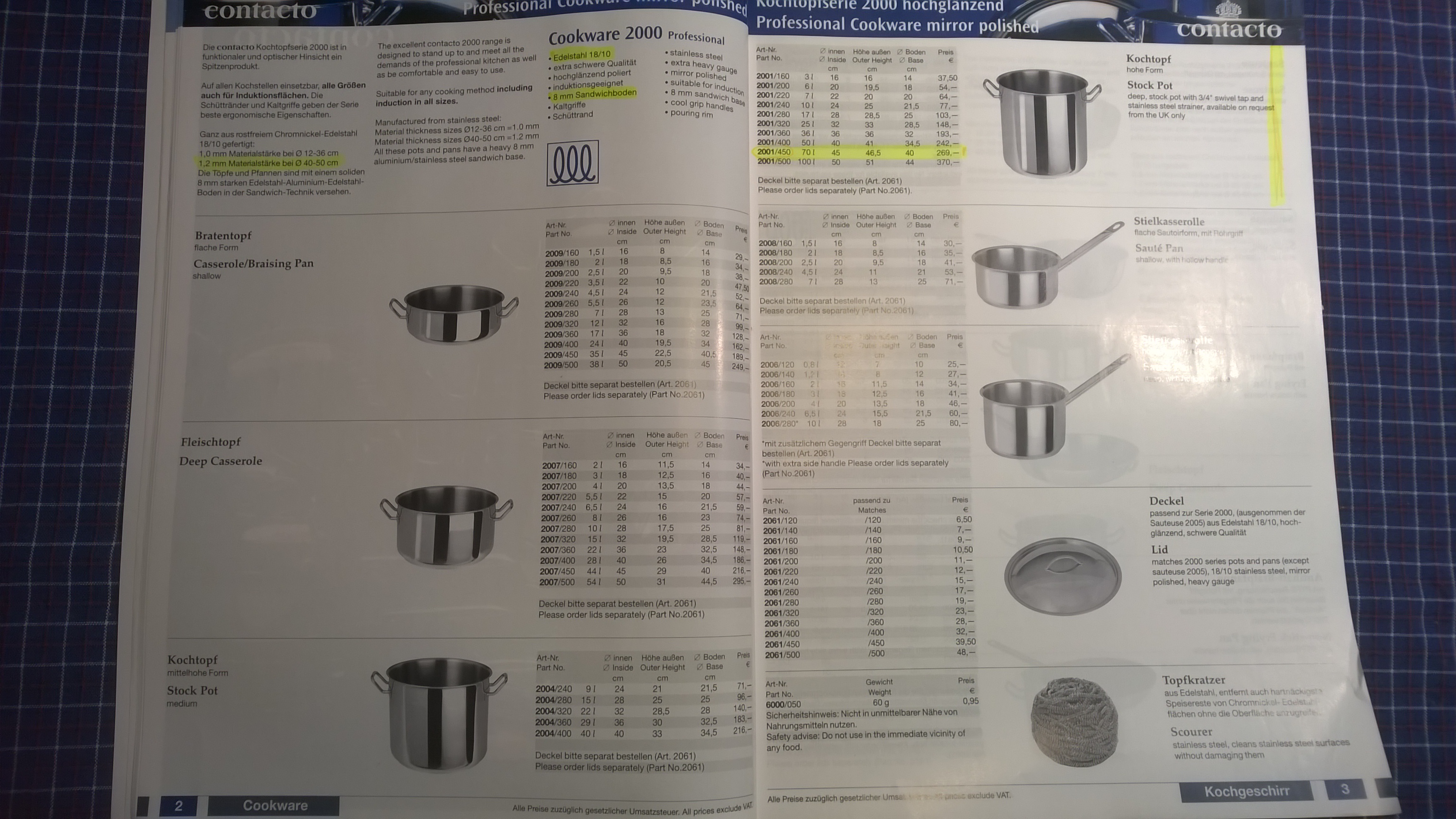 laut Contacto-Katalog hat die Serie 2000 ab einem Kochtopfdurchmesser von 40 cm (also ab einem Volumen von 50 Liter) eine Wandung von 1,2 mm. Der Topf ist induktionsgeeignet