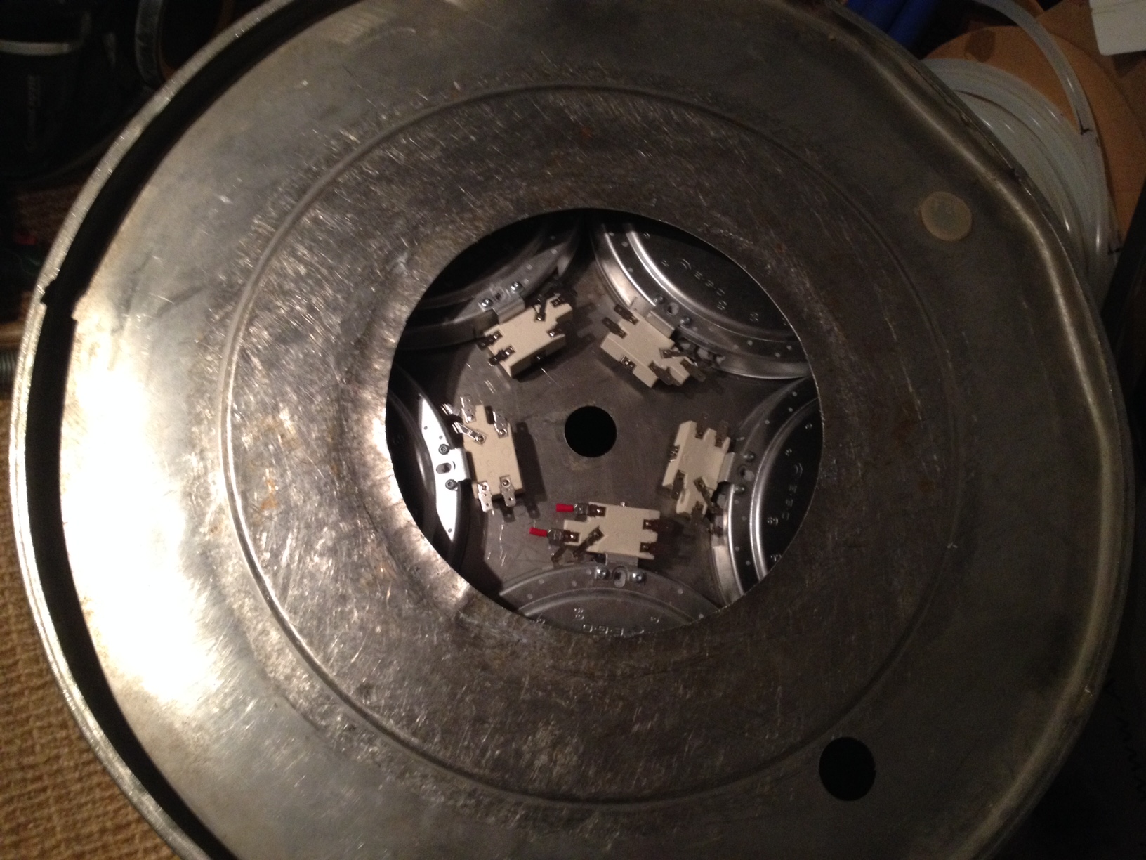 So sieht das dann aus, wenn die fünf Ceran-Strahler an ihrem Platz sind. Allerdings muss ich den Boden noch mit schwarzem Ofenlack behandeln, damit der die IR-Strahlung vom Edelstahl absorbiert wird.