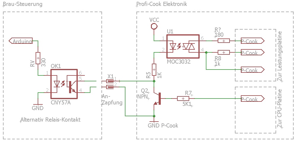 wie versproche hier die Ergebnisse meiner Profi-Cook Schrauberei. Ich habe meinen gestern gelegten Fernsteuer-Eingang mittlerweile getestet und er funktioniert. Schaltungstechnisch sieht das so aus: