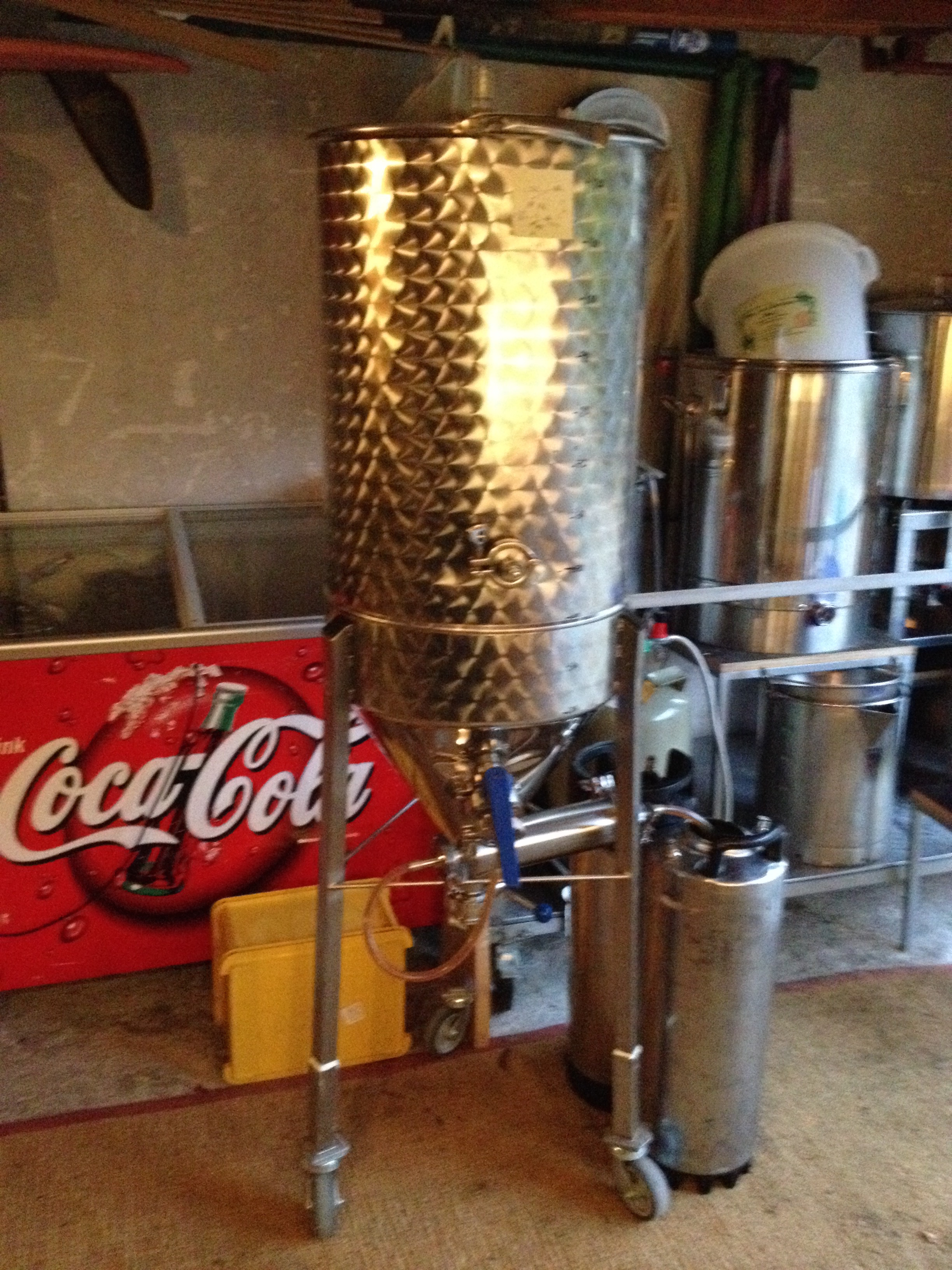 Durch die an den Tank angebauten Rollen, ist alles hoch genug, um ohne Firlefanz ins Fass abzufüllen.