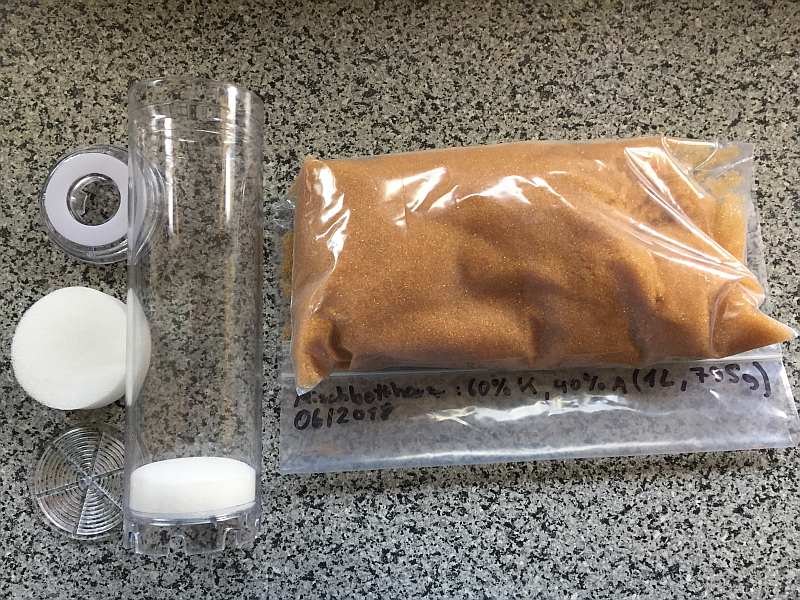 Für den ersten Testlauf habe ich 0,5 L Mischbettharz in die Patrone gefüllt.