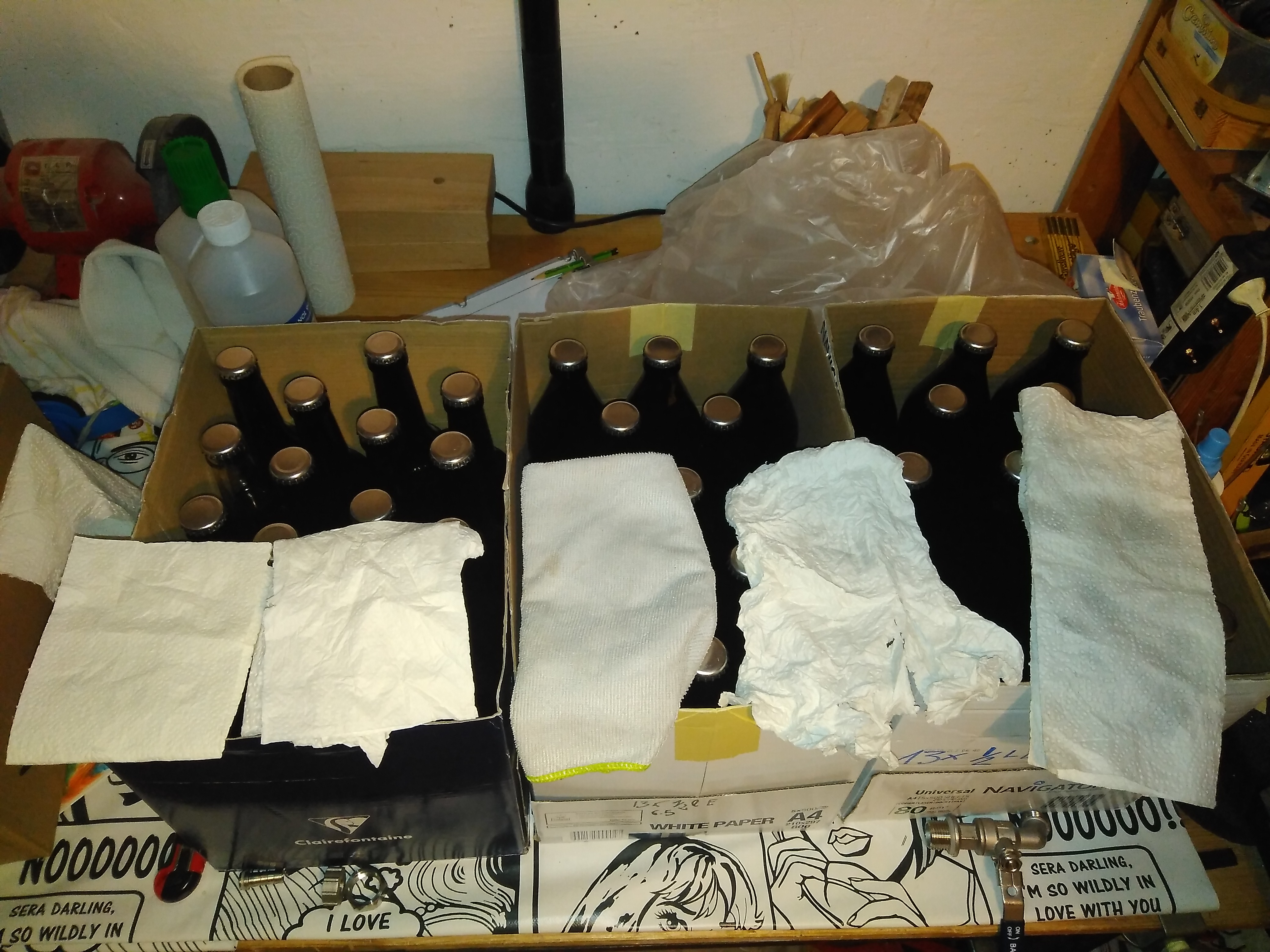 4. Reinigung mit Spiritus (wieder schön reingekippt, vorher Hahn ausgebaut ...) und Mikrofasertuch (frisch gewaschen, auch wenn es nicht so aussieht...).