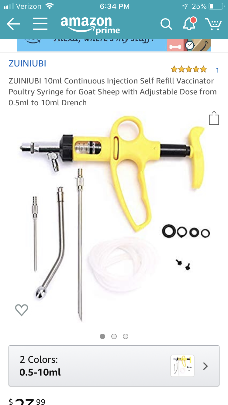 Auf die Bezeichnung hätte ich natürlich kommen können: 'continuous drench yellow gun syringe sheep goats oral pig animal husbandry'