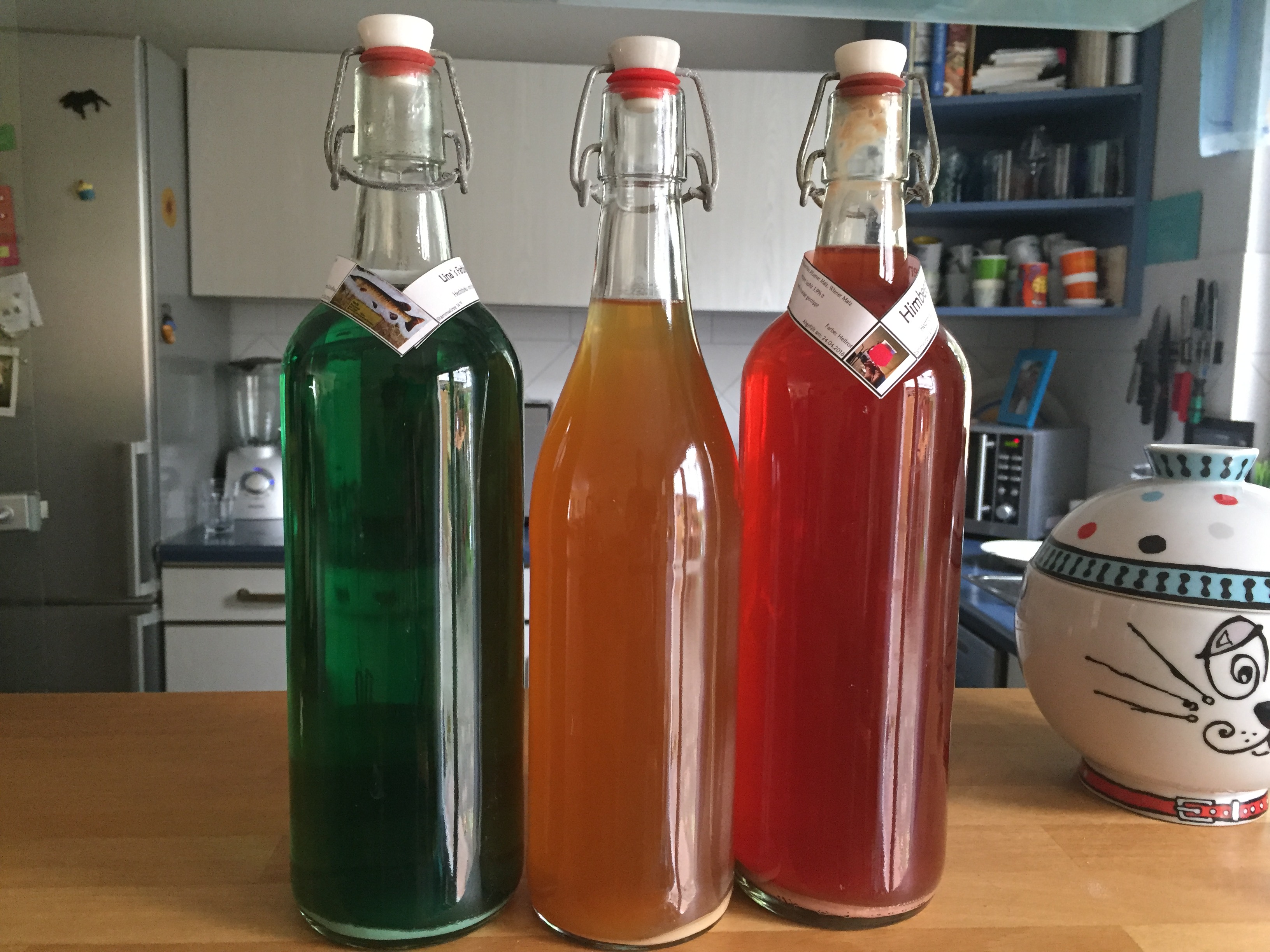 danibelami hat geschrieben:Wir haben mal mit Blattgrün (aus der Apotheke) grün gefärbt. Das wird auch bei diesen Papa Türk-Limos genutzt. Hat sich zwar in der Flasche nach einiger Zeit auch abgesetzt, aber dann beim Öffnen wieder diffundiert. Resultat kann man sich hier anschauen: