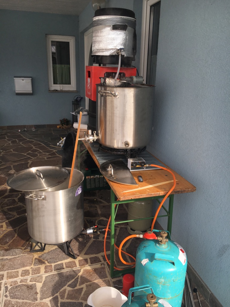 Ab diesem Zeitpunkt wurde die neue 50L Ausschlag Anlage bei meinem Braukollegen aufgestellt. (Ist für ihn zwecks Barrierefreiheit etwas leichter)