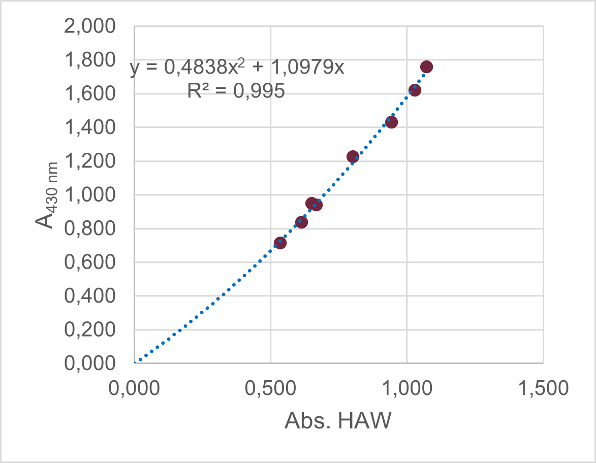 Die Bestimmung der Bierfarbe erfolgt bei 430 nm. Dazu muss die Probe jedoch 100 % blank sein (z.B. Kieselgutfiltration oder Membranfiltration).