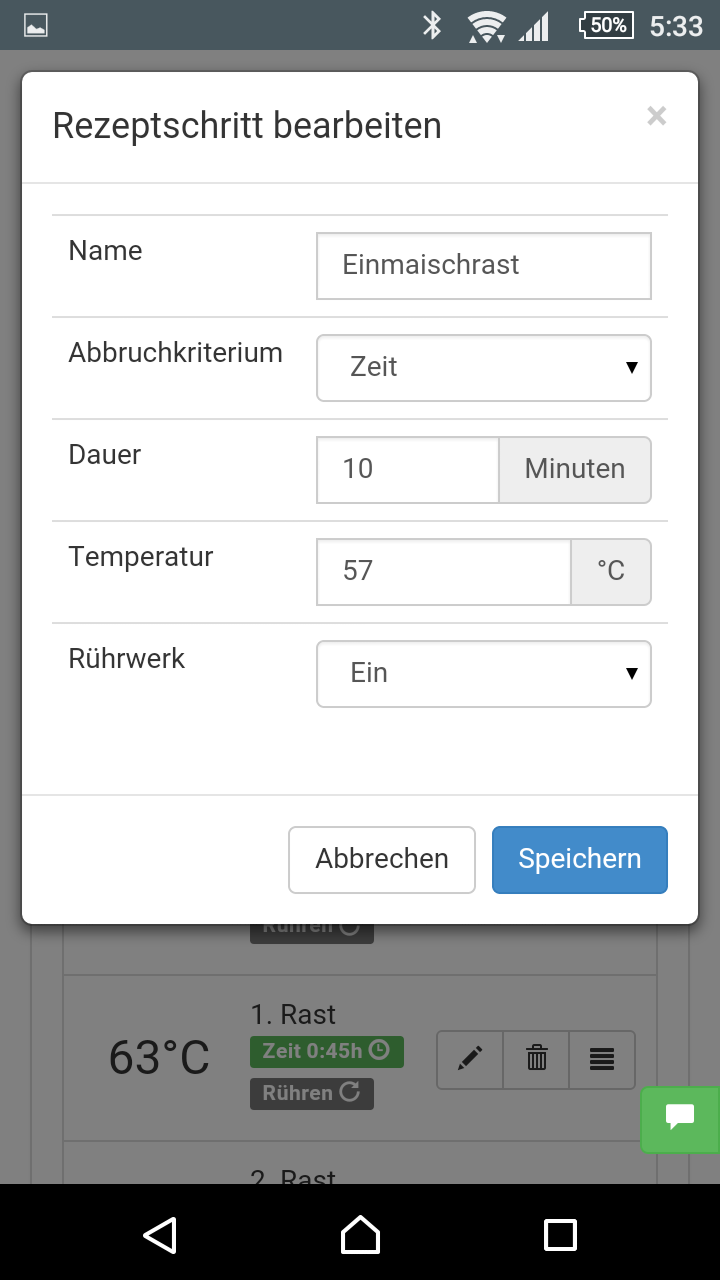 - Rezepte und Rasten kannst du völlig frei über die App über die App konfigurieren (siehe Screenshot "Rezeptbildschirm (Rezept bearbeiten)" weiter oben) - deiner Phantasie sind technisch keine Grenzen gesetzt