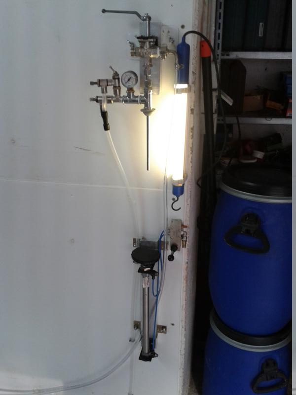 Der linke Klarsichtschlauch ist der Ablauf, falls es tatsächlich mal überschäumt. Der Rechte für die Co2 Vorspannung.