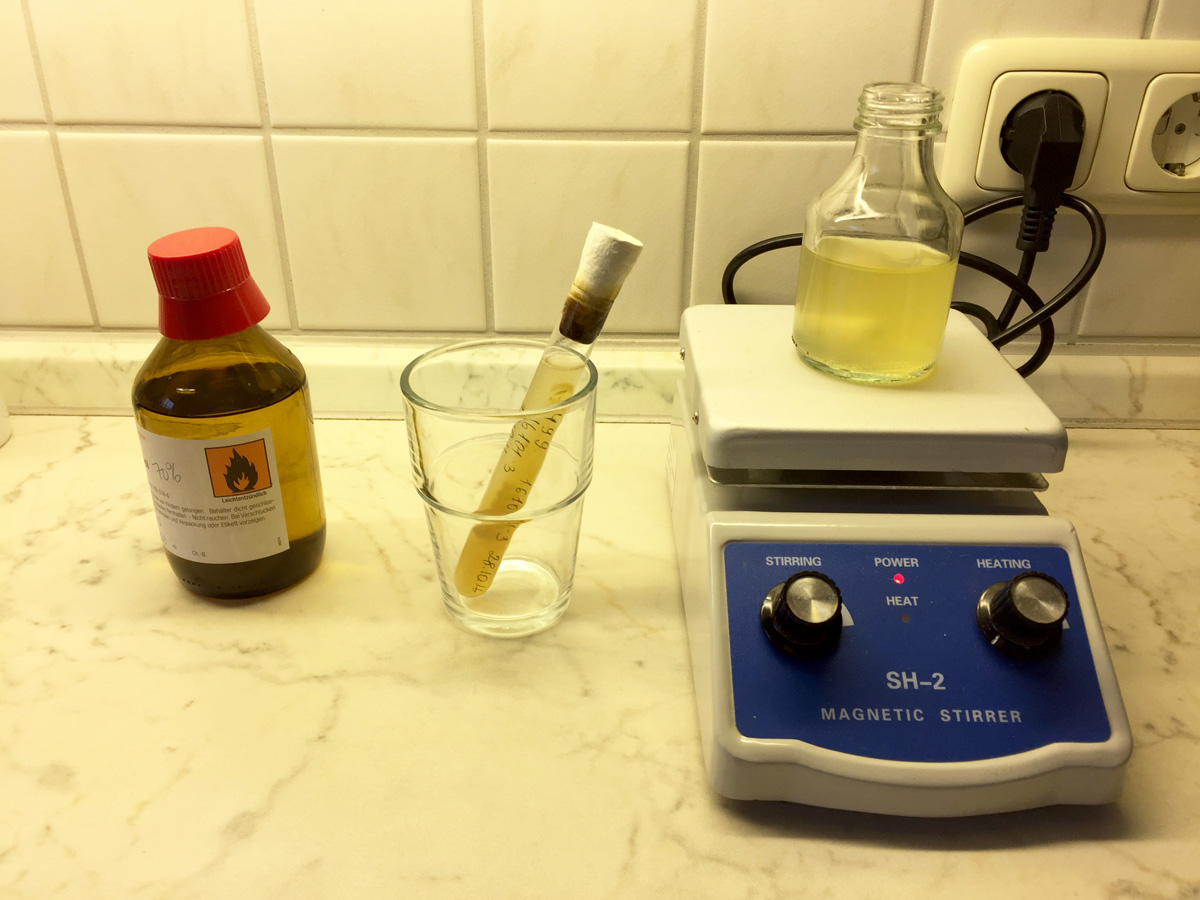 Vorher desinfiziert, gut andrücken und ab auf den Magnetrührer.