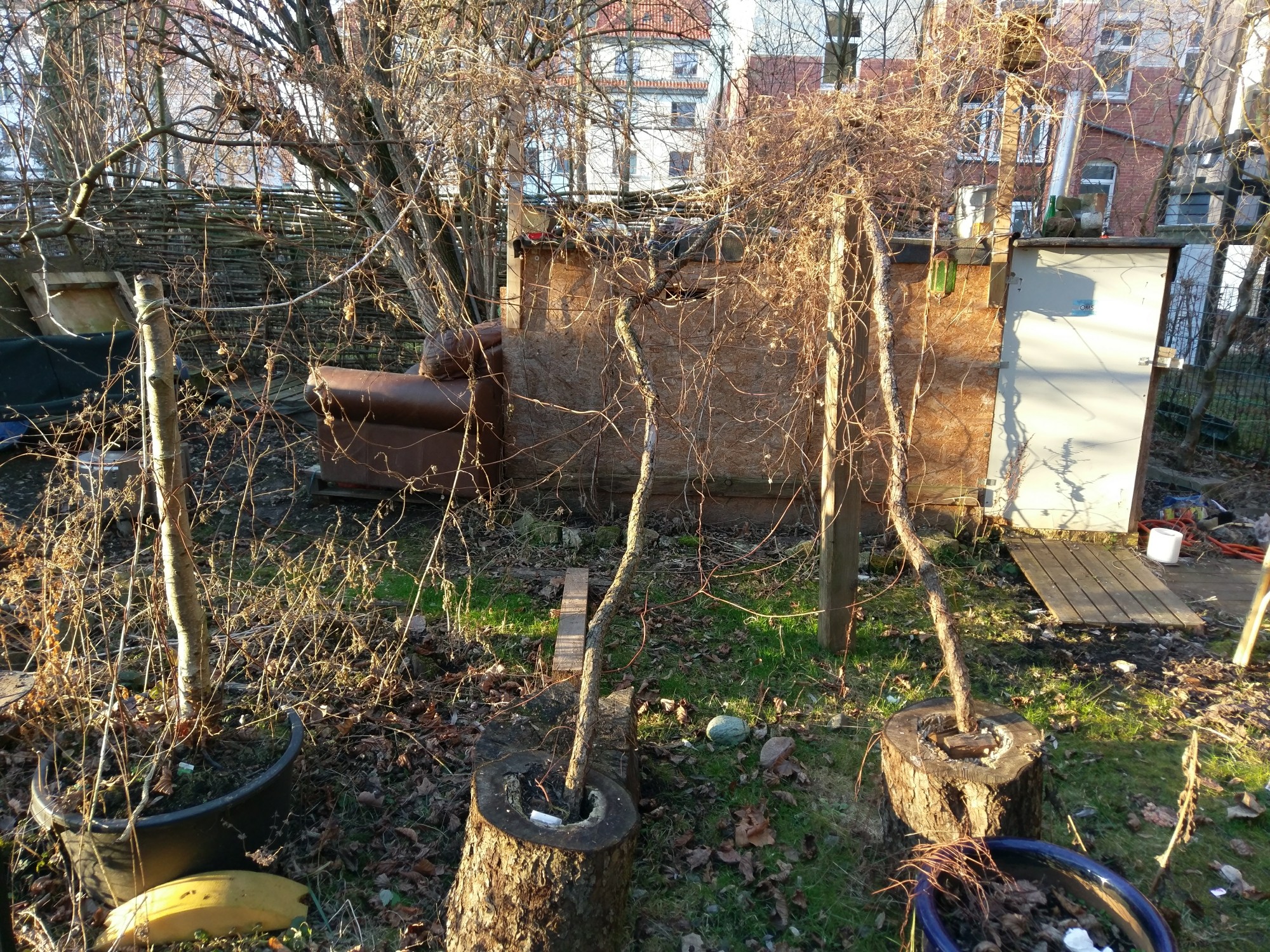 ich habe gerade im Garten gesehen, dass der Hopfen aufgewacht ist und schon neu treibt. Ich habe ihn bisher an stark improvisierten Rankhilfen aus verschiedenen Ästen und Seilen wachsen lassen, aber dieses Jahr möchte ich mal eine "richtige" Rankhilfe basteln, mit Metalldraht und so weiter.