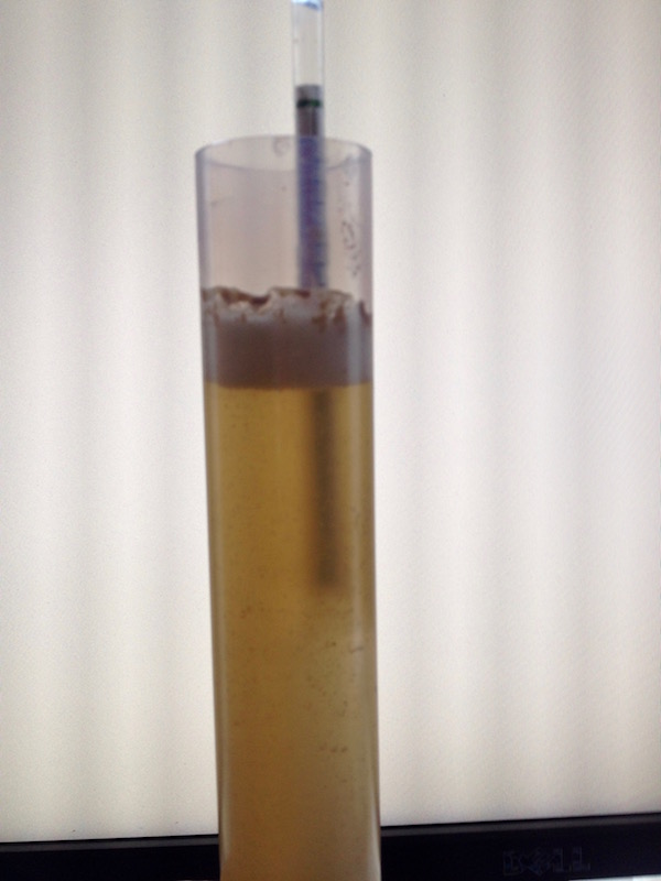 Pils fürs Volk aus MMum. 10ter Tag. StW 11,5°, Restextrakt 2,4 oder 3,1°P, je nachdem, ob ich der Spindel oder dem Refraktometer glaube (Refraktometerwert vom KBH umgerechnet). Gärtemperatur 15°C. Am kommenden WE kann ich wohl abfüllen. Schmeckt schon vielversprechend