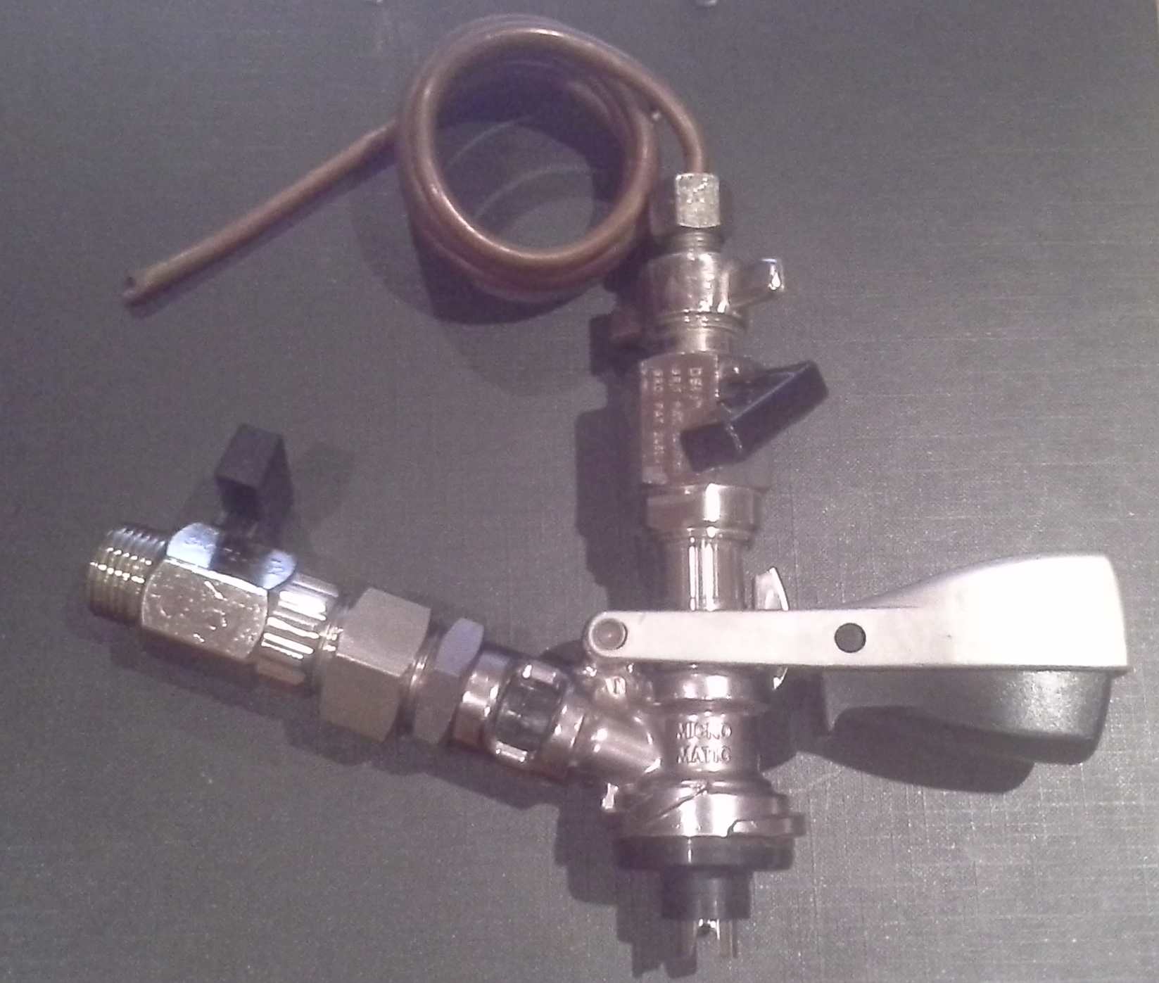 * Zapfkopf mit Absperrhahn an der Bierleitung