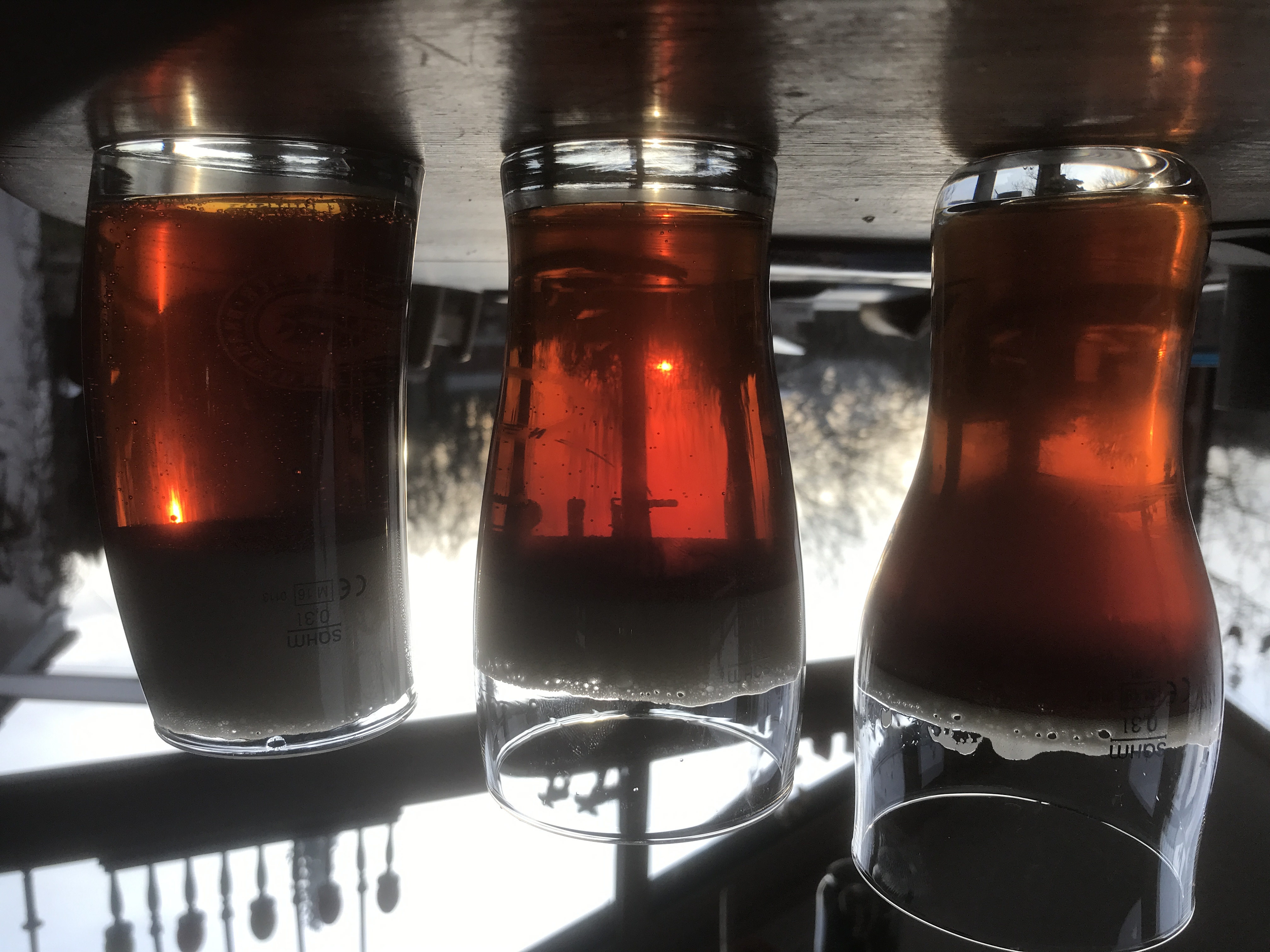 3 Märzen nebeneinander. Eins gekauft (regionale Kleinbrauerei), 2 von mir, einmal 10 Monate alt, einmal 4 Monate.
