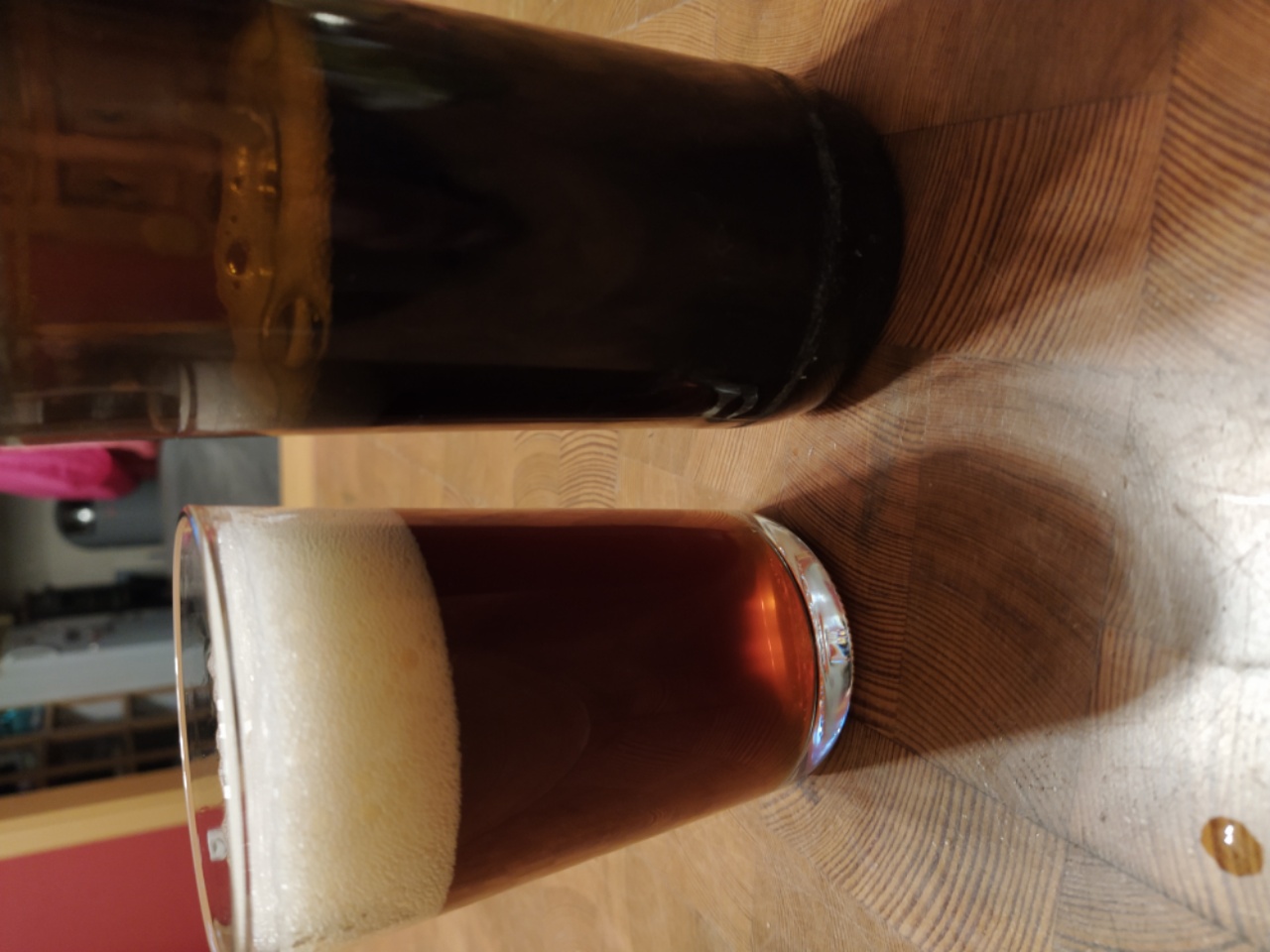 Mittlerweile kann ich das gut trinken, der Fichtengeschmack ist dezenter geworden. Frisch war das eine Katastrophe, von der ich kaum eine Halbe runterbekam. Allerdings glaube ich Oxidation zu schmecken, interessant. Riecht irgendwie "britisch"...