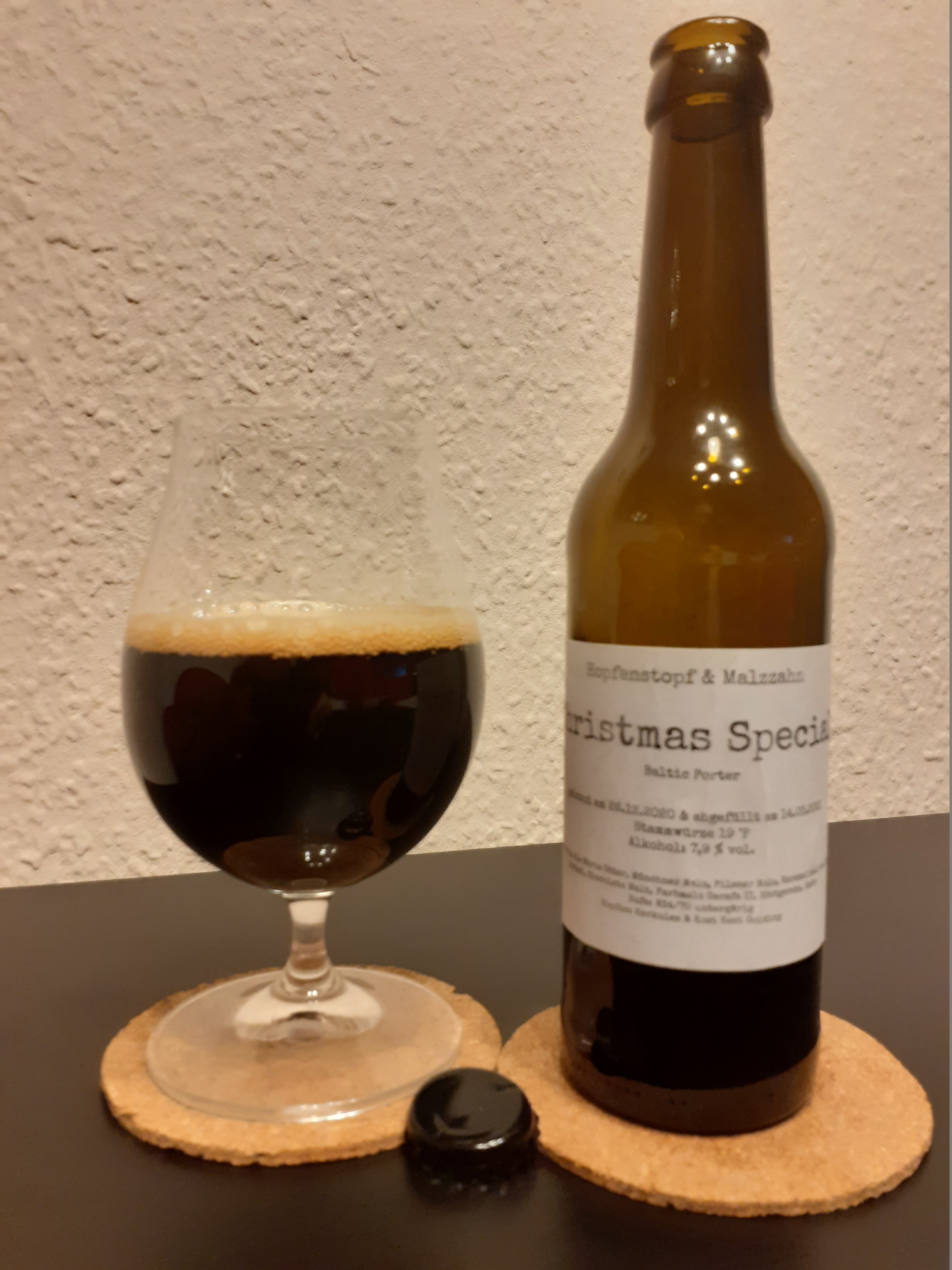 Ein Barrel Aged Imperial Stout "Barröl" des Brauteams (Räuber)Hopfenstopf & Malzzahn aus dem vorweihnachtlichem Biertausch.