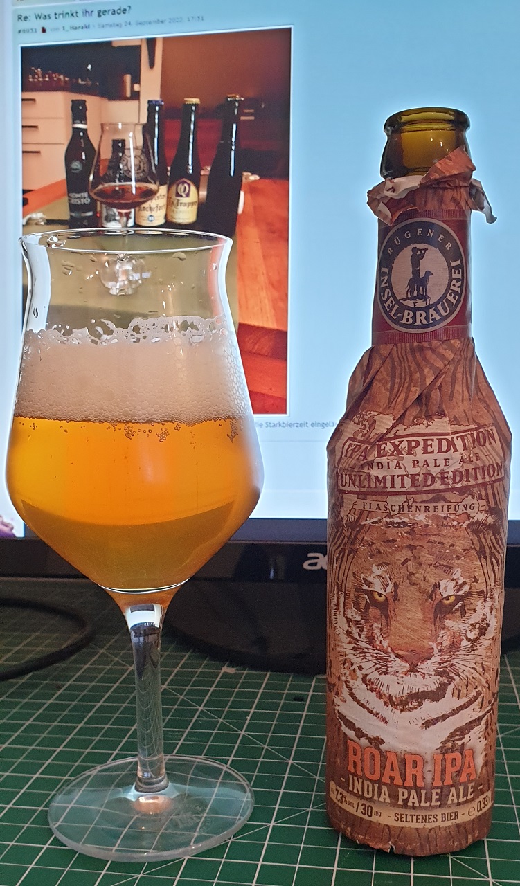 Ein Roar IPA der Inselbrauerei. Laut Etikett ein New England Style IPA mit Sabro, Huell Melon, Citry und Galaxy. Sehr lecker.