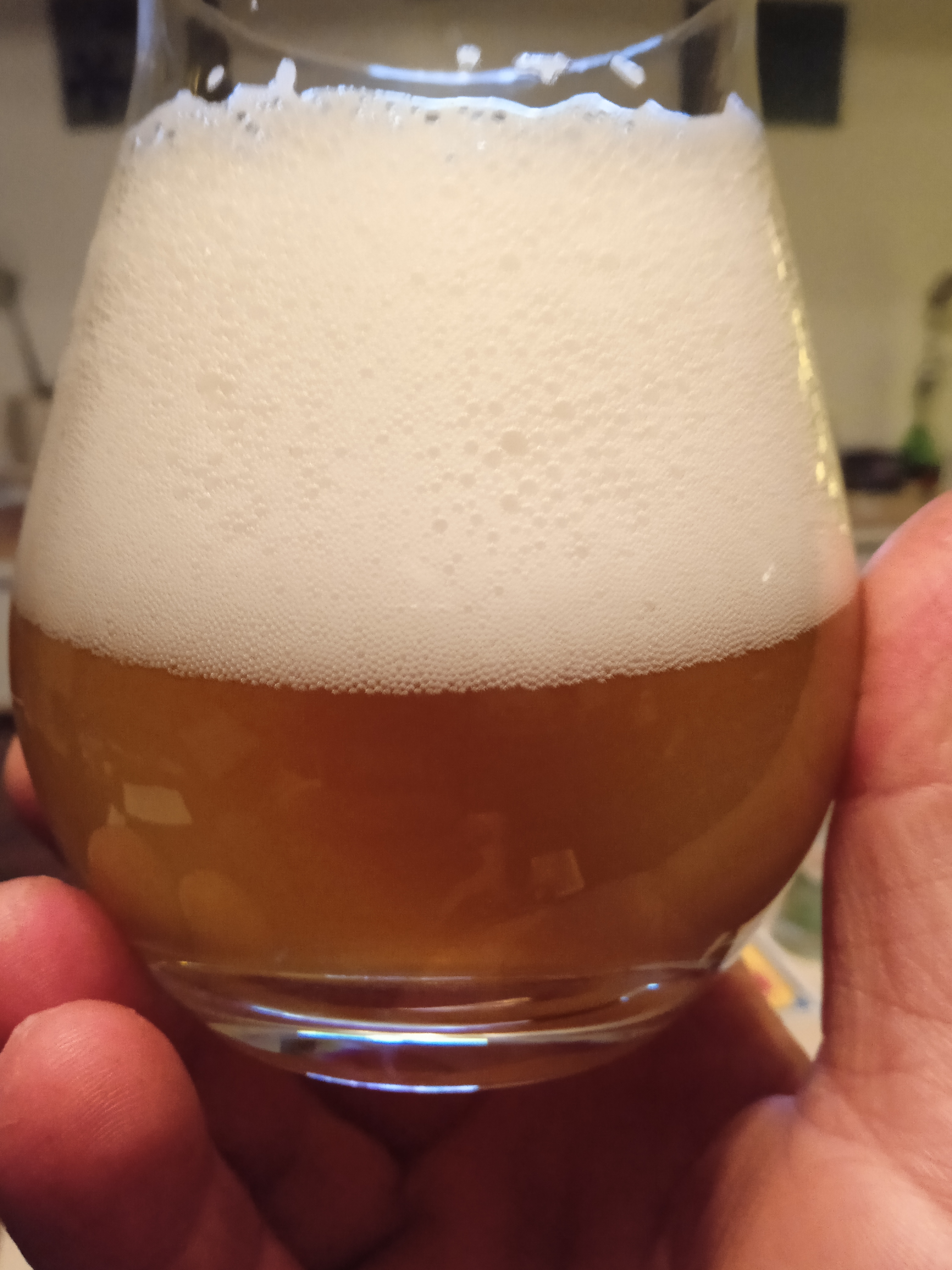 Ein helles malziges Obergäriges Bier soll es sein. Und ja ich muss sagen durchaus gelungen. Eingeschenkt schaut einem ein weißer, schön stabiler fester Schaum an. Das macht spaß aufs trinken. Optisch schauts sehr hefig aus, wobei dies auch am Transport vom Kühlschrank zum Wohnzimmertisch liegen kann. In der Nase merkt man sehr dezente Hopfenaromen und auch eine gewisse hefigkeit. Im Geschmack ist das Malz und wieder die Hefe zu schmecken. Hopfen merk ich hier keinen, ist aber bei einem Hellen wohl auch so gewollt.