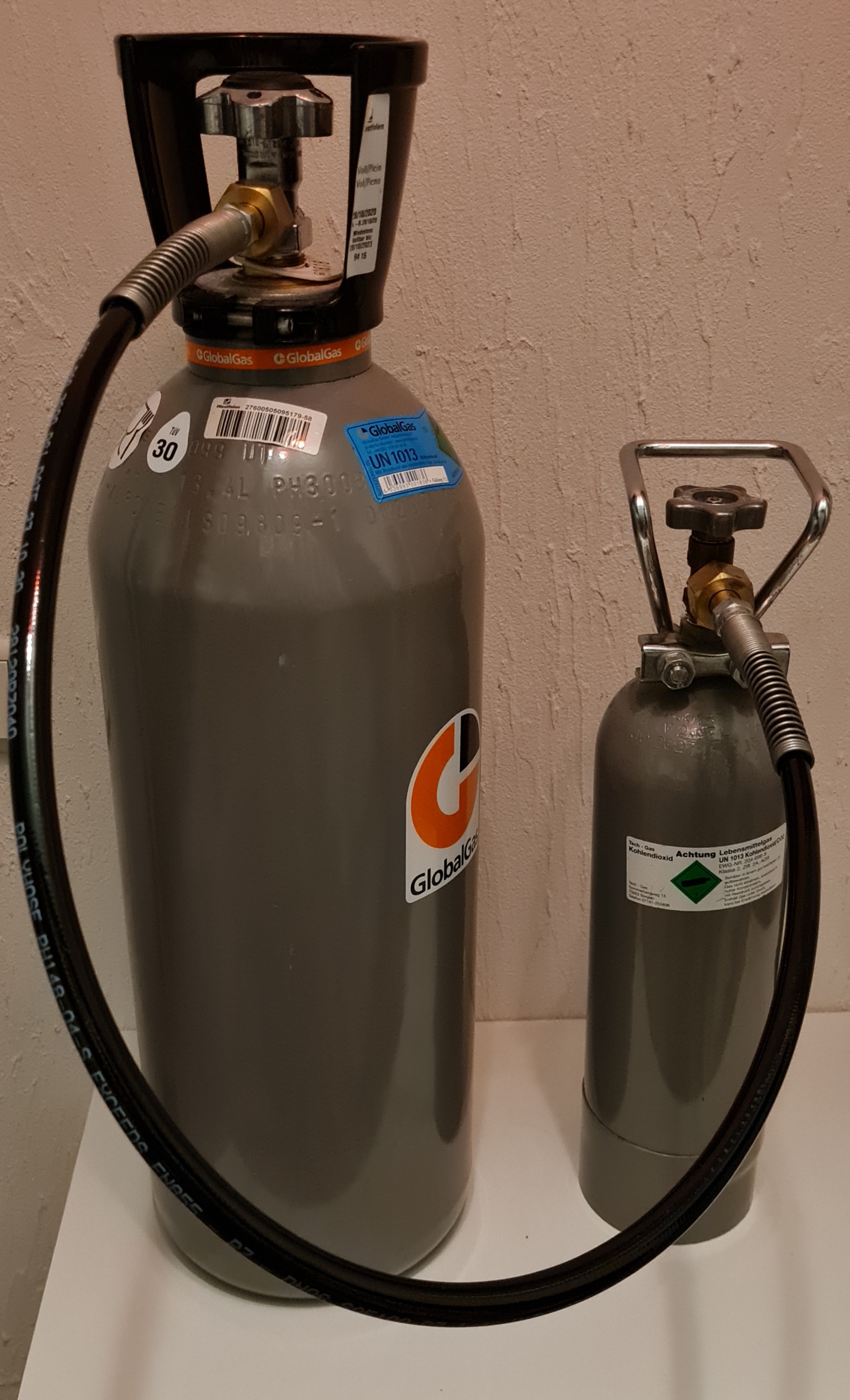 Also müsste auch ca. 330g flüssiges CO2 umgefüllt worden sein ...